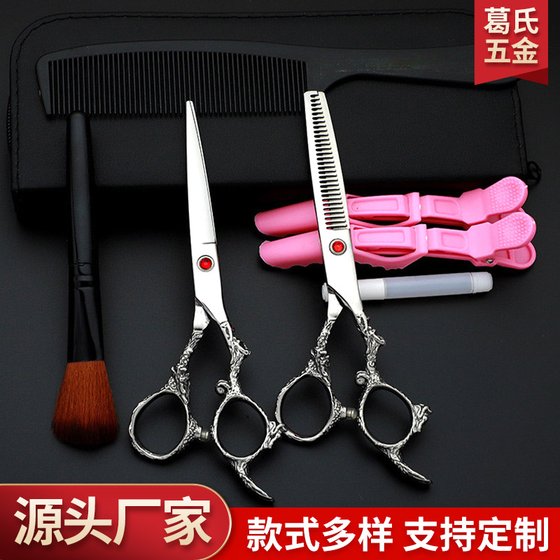 メーカー卸売り黒金理髪ハサミ美容ハサミペットハサミ劉海ハサミ平ハサミセット