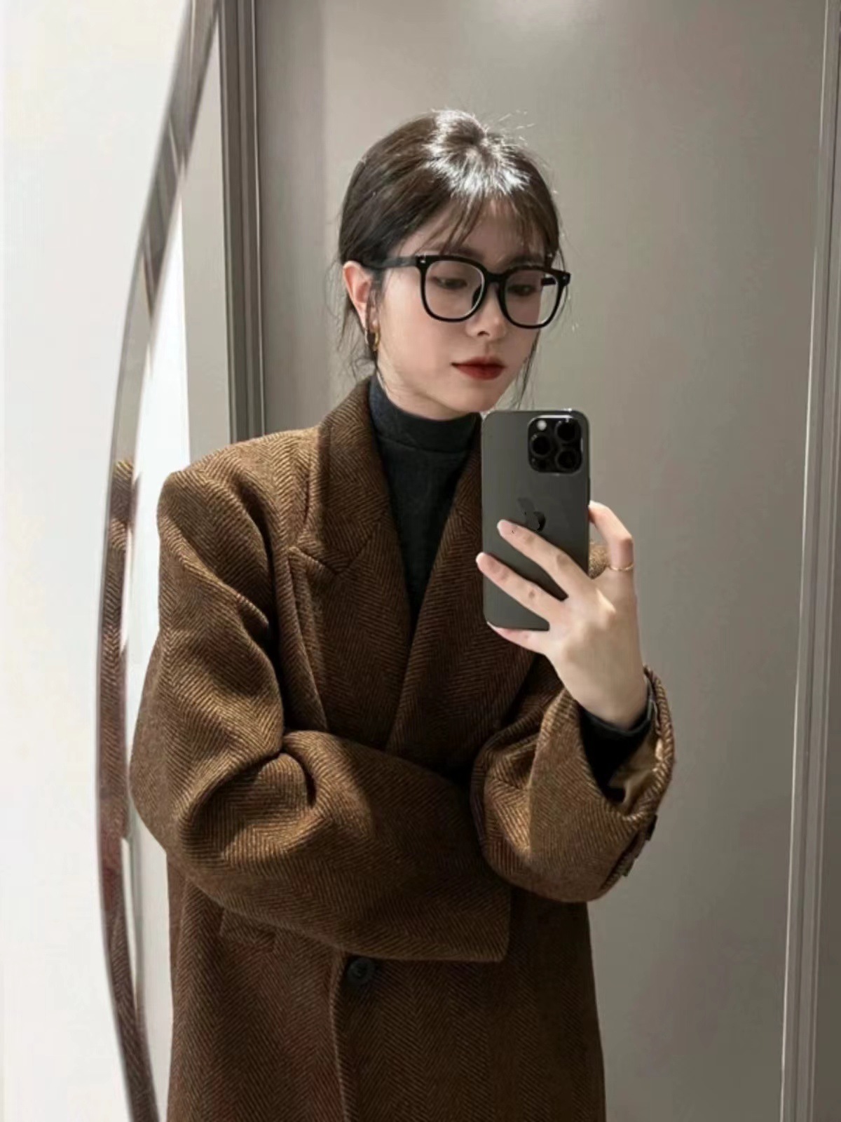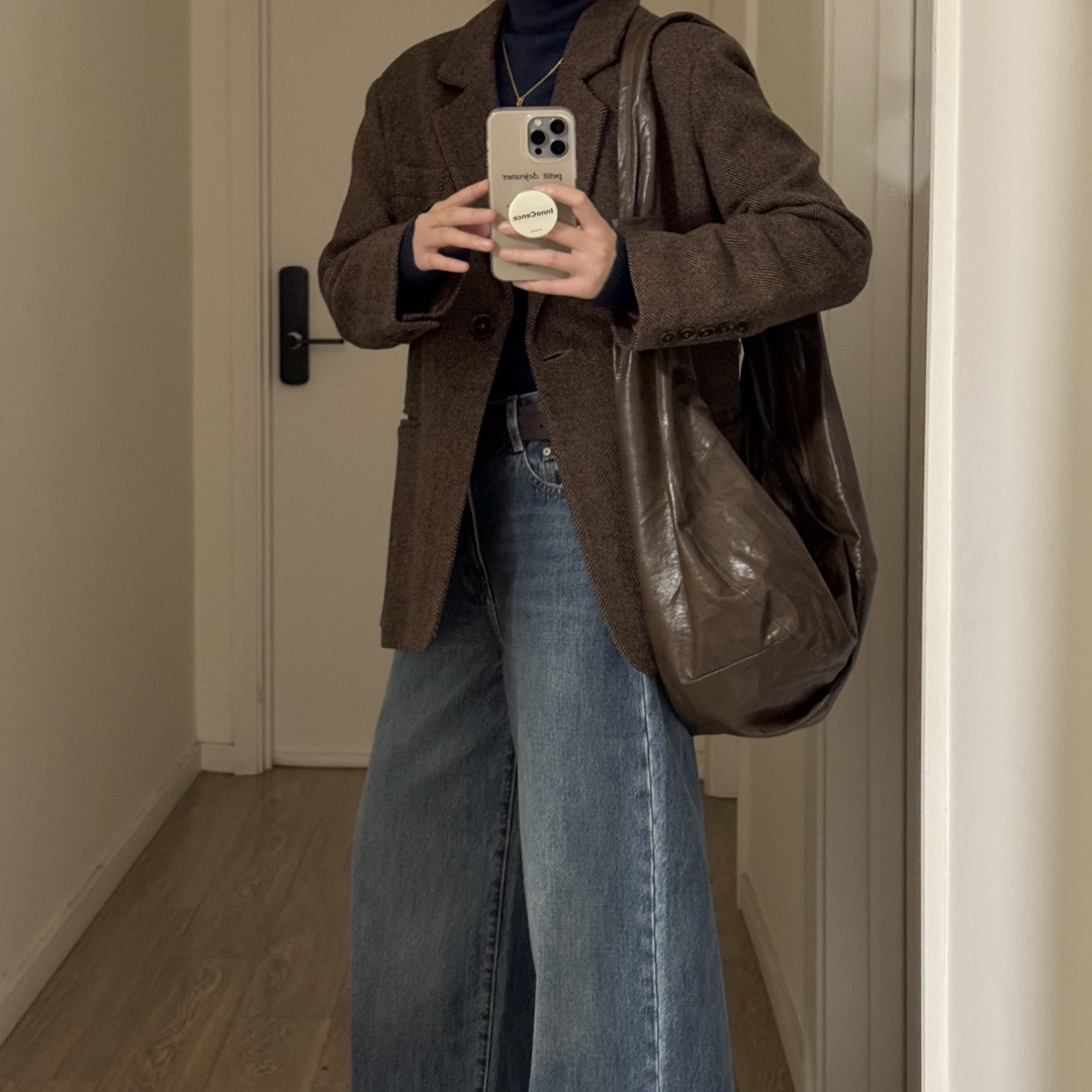 2025年秋冬新款人字纹美拉德小个子高级感西装外套气质韩系呢子大