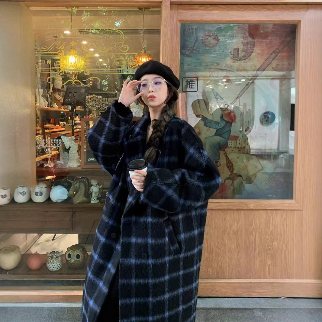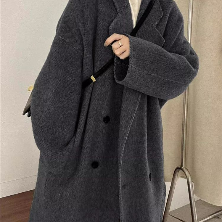 新款慵懒风宽松感毛呢大衣女秋冬小个子过膝中长款保暖外套女装