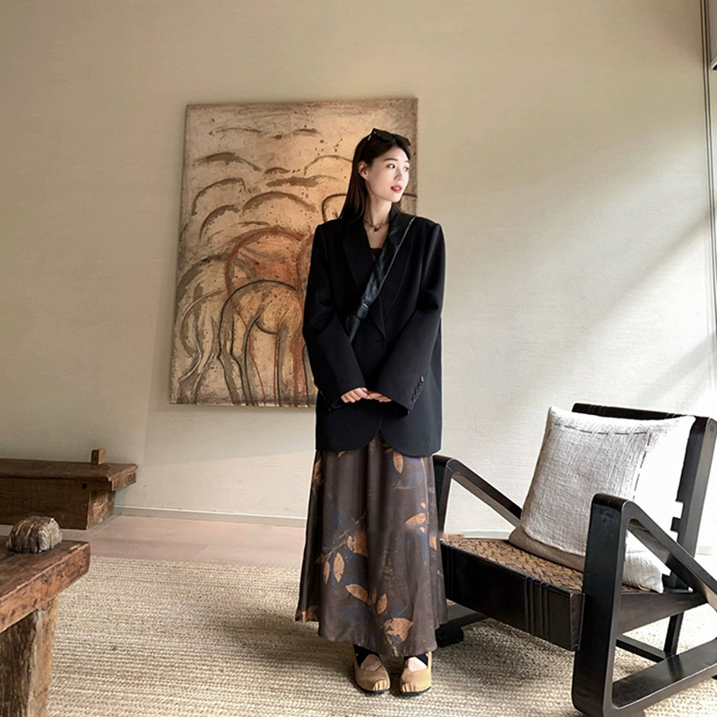 黒の高級感のあるスーツのコートの女性2024秋の新しい気質のカジュアルな組み合わせの肉を遮るスーツの上着