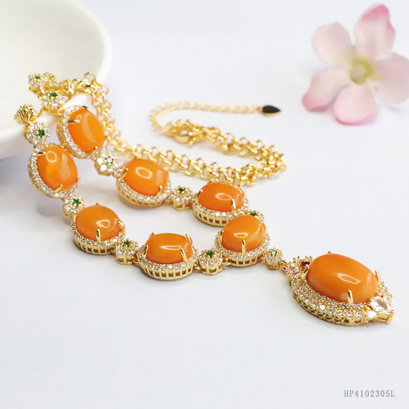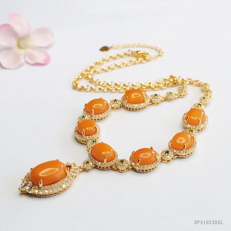 钰天然琥珀ネックレス花パー多輪ブレスレットジュエリー女性工場卸売り代発HP3121317