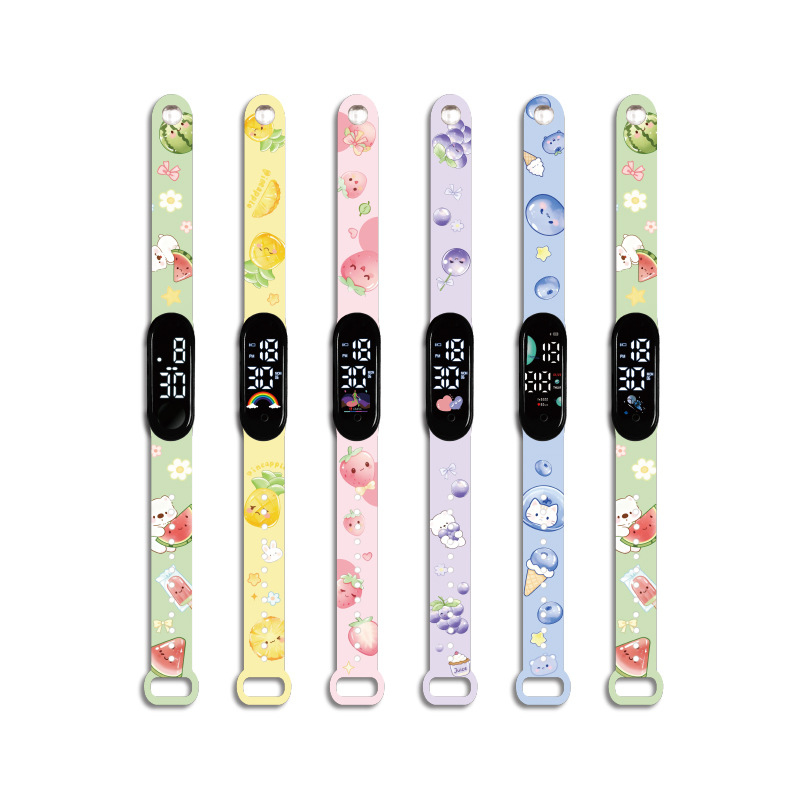 新款卡通彩印水果LED电子手表时尚个性潮流学生儿童防水运动手表