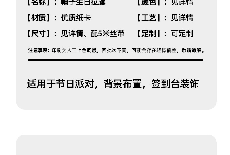 仕様 カラフルな誕生日帽子の旗,黄金の誕生日帽子の旗,シルバーの誕生日帽子プルフラッグ,ローズゴールドの誕生日帽子プルフラッグ