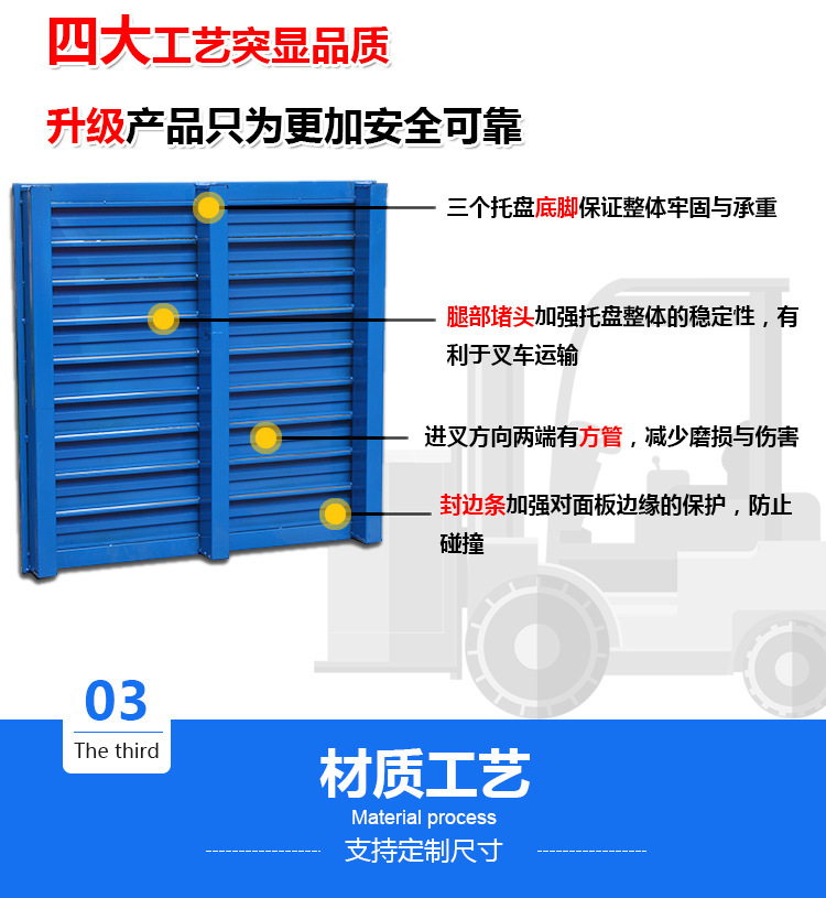 7、灵敏(四方向的刺进规划,无形中进步空间运用和操作的方便性,并且其巩固的底版规划亦契合运送滚输和自动包装系统运用)等。