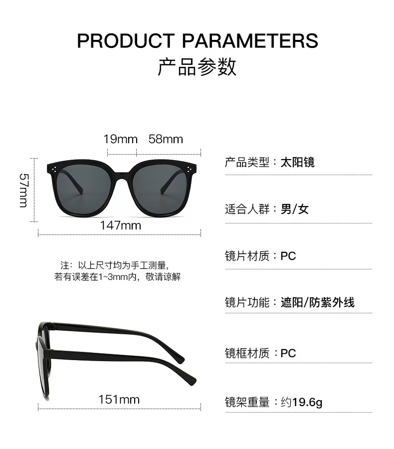 GMサングラス、男性用高級サングラス、女性用紫外線防止運転サングラス、大きな顔の女性用、痩身、小さな三点サングラス、義烏