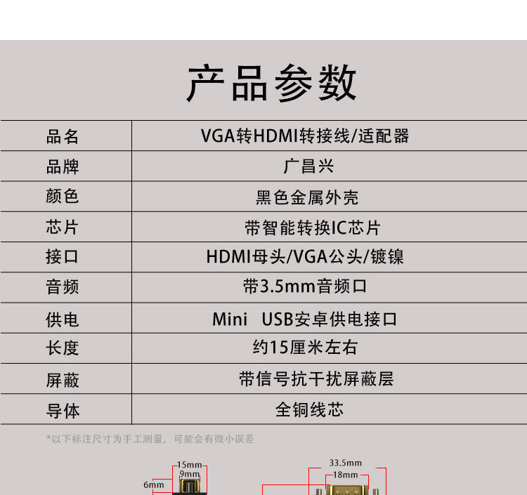 vga转hdmi转接头 vga转hdmi头 vga转hdmi转换头