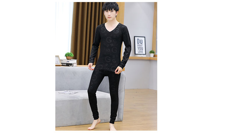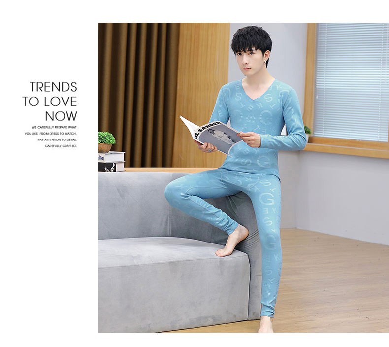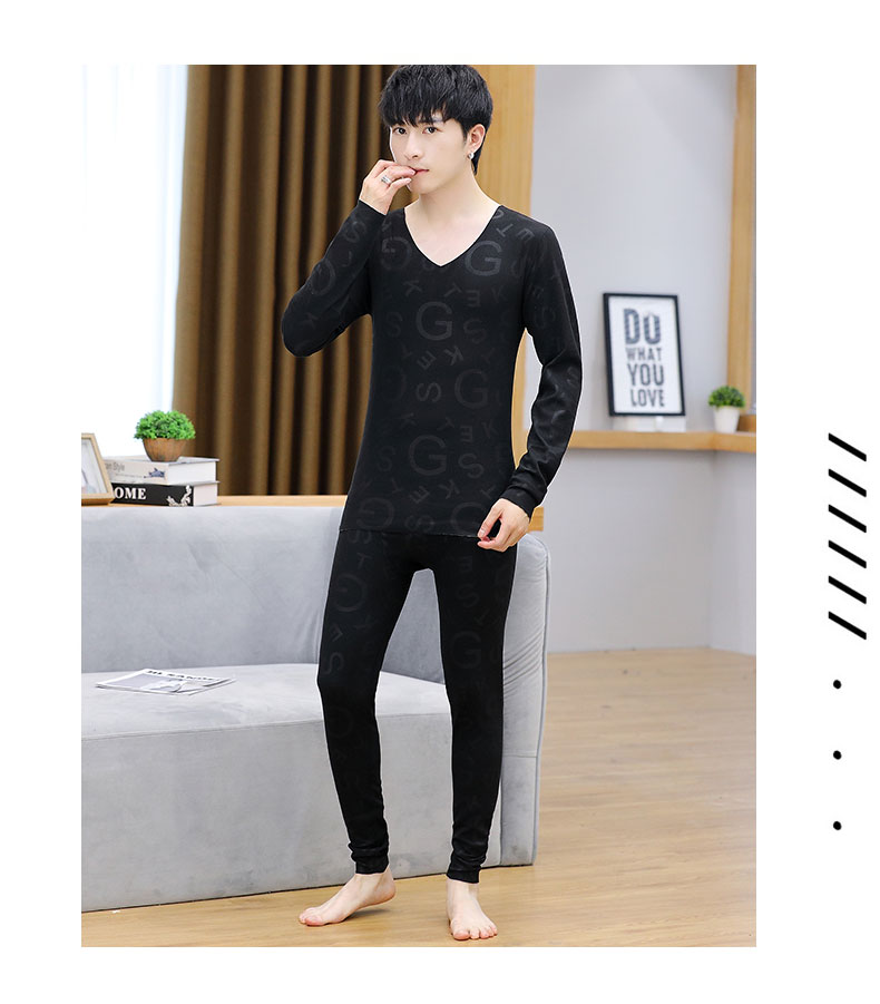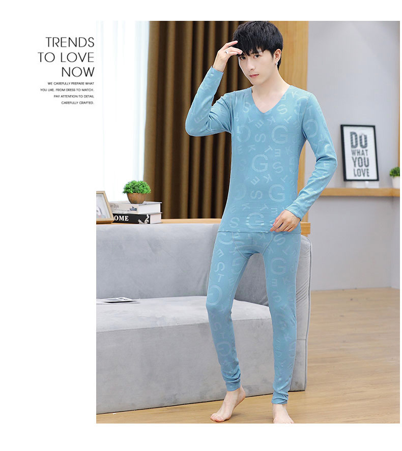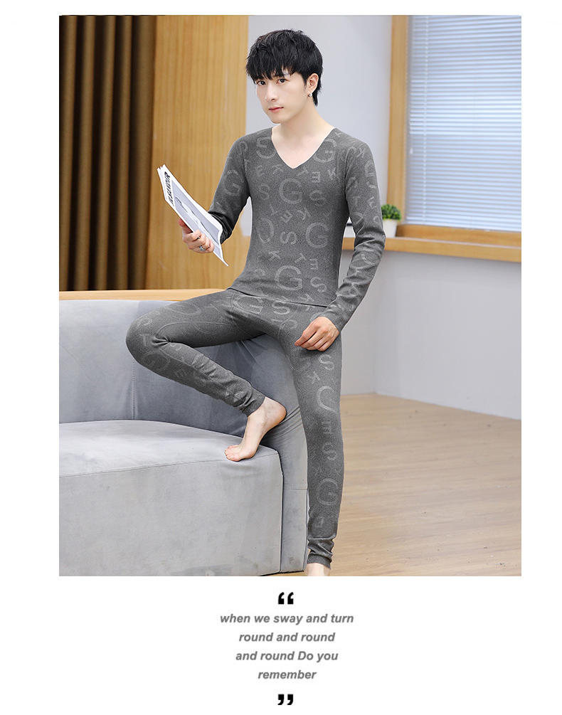 男性の保温下着の徳絨無痕vネックの肌着発熱ボトムシャツの男性タイプの青年秋衣秋ズボンセット