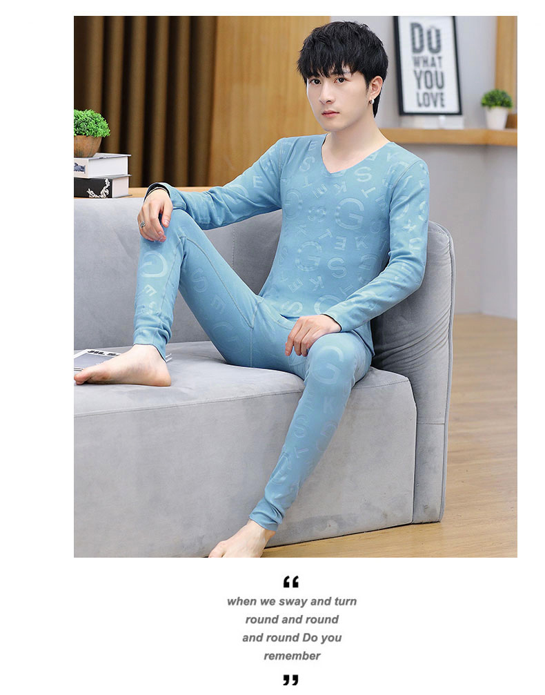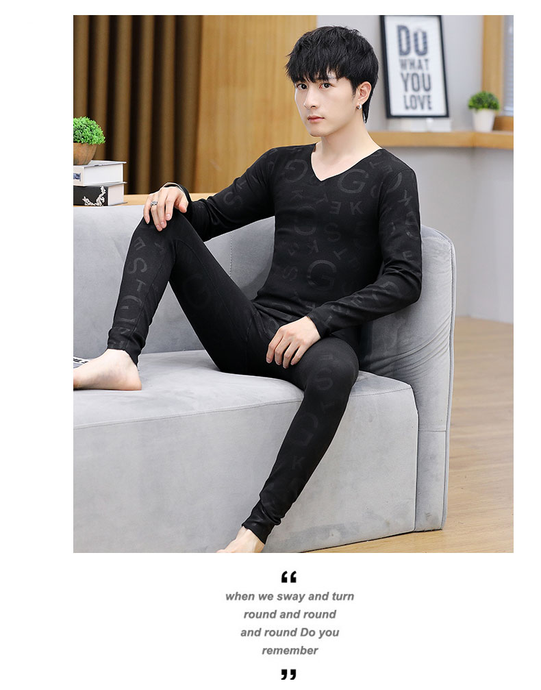 徳絨毛保温下着セット男性用恒温発熱絨毛面青年学生修身プリント絨毛秋衣秋ズボン