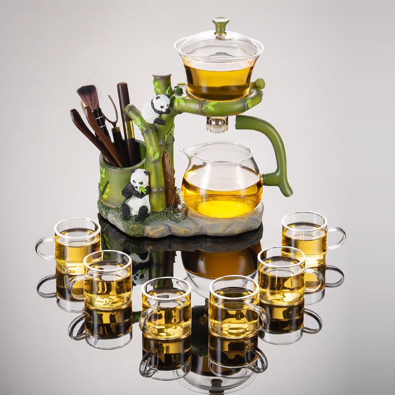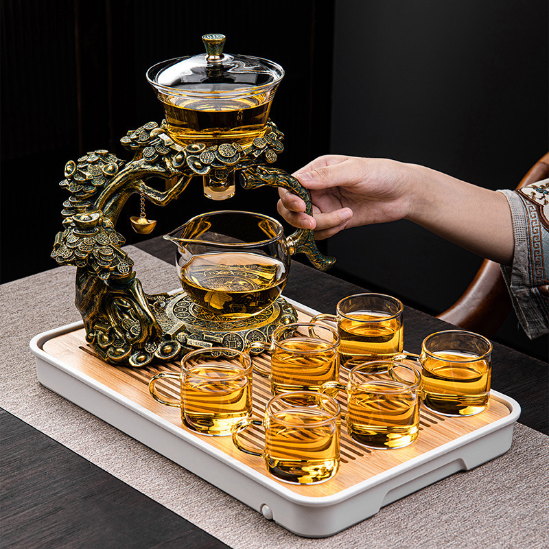 怠け者のお茶作りツールガラスティーセットティーポットティーカップ家庭用カンフー茶自動ティーメーカーライト高級ハイエンド
