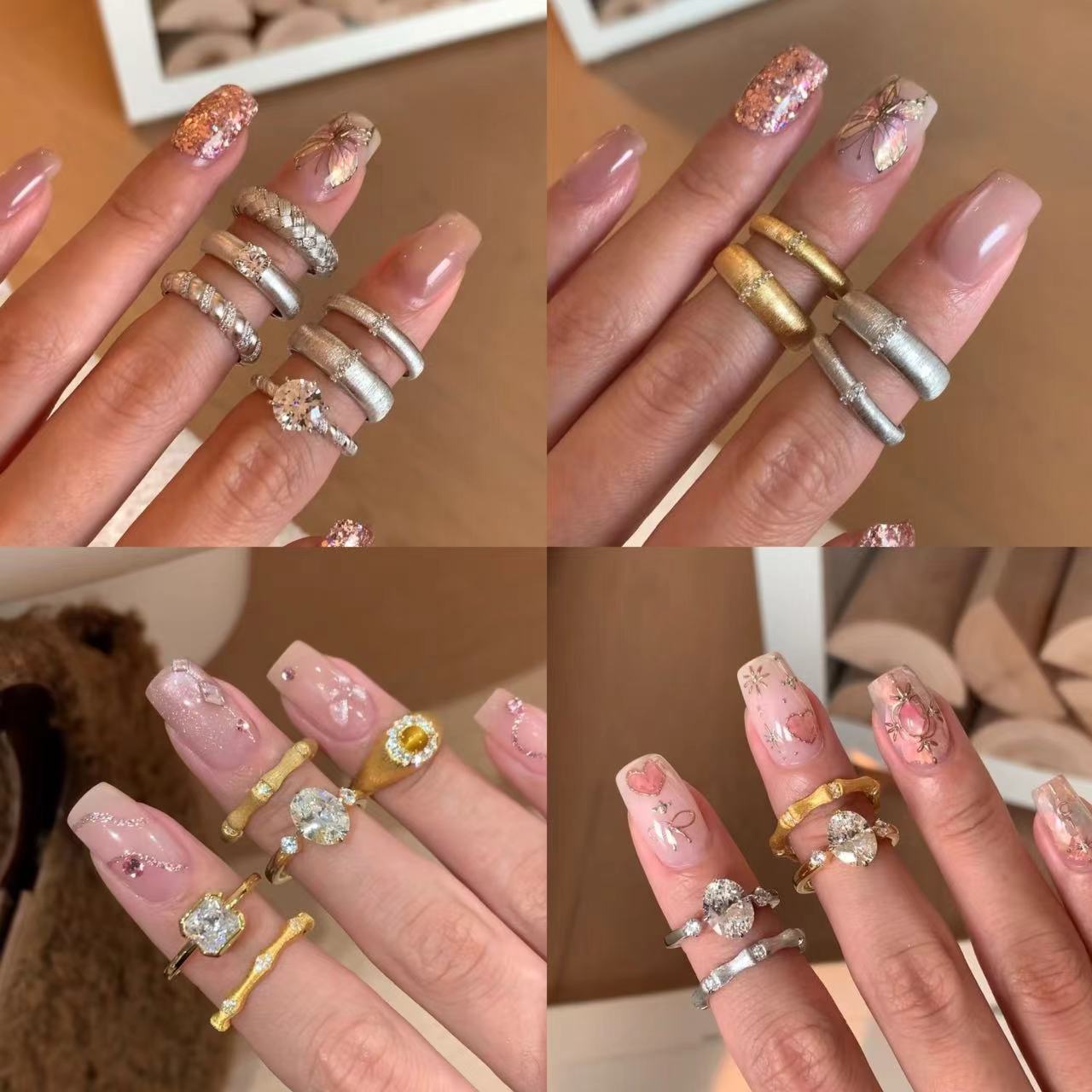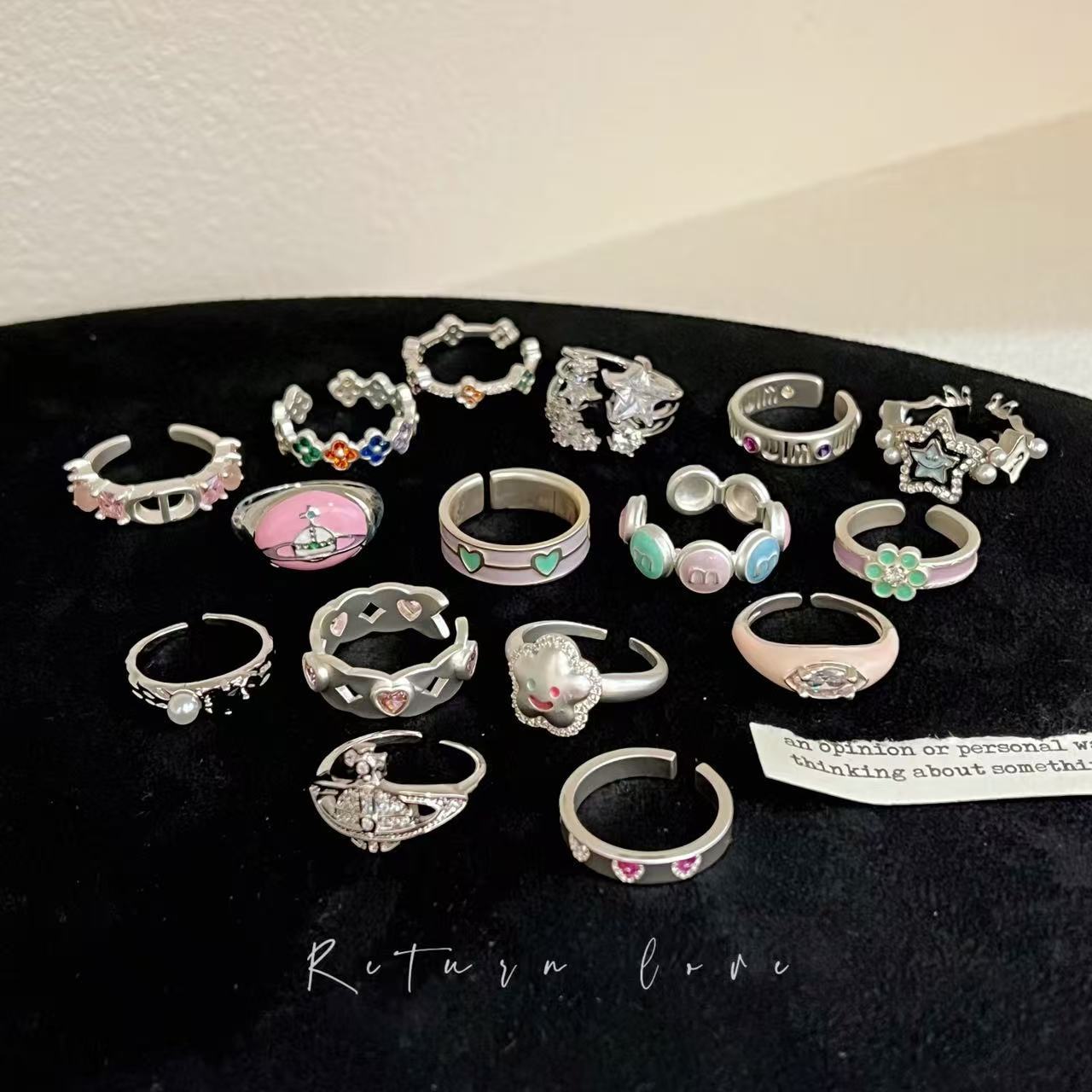 韩系小众彩色厚银闪钻戒指博主同款高级感叠戴爱心指环食指戒戒子
