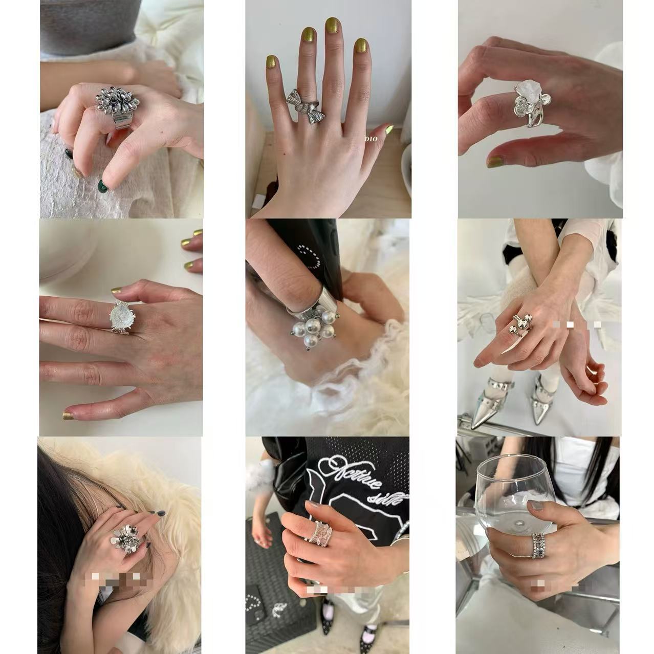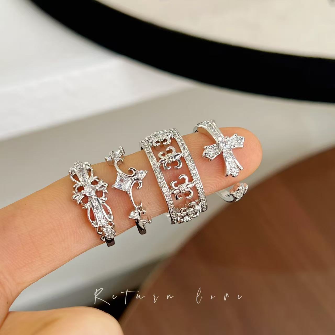 鸢尾花十字架甜酷冷淡戒指合集小众高级感百搭复古独特指环指戒子