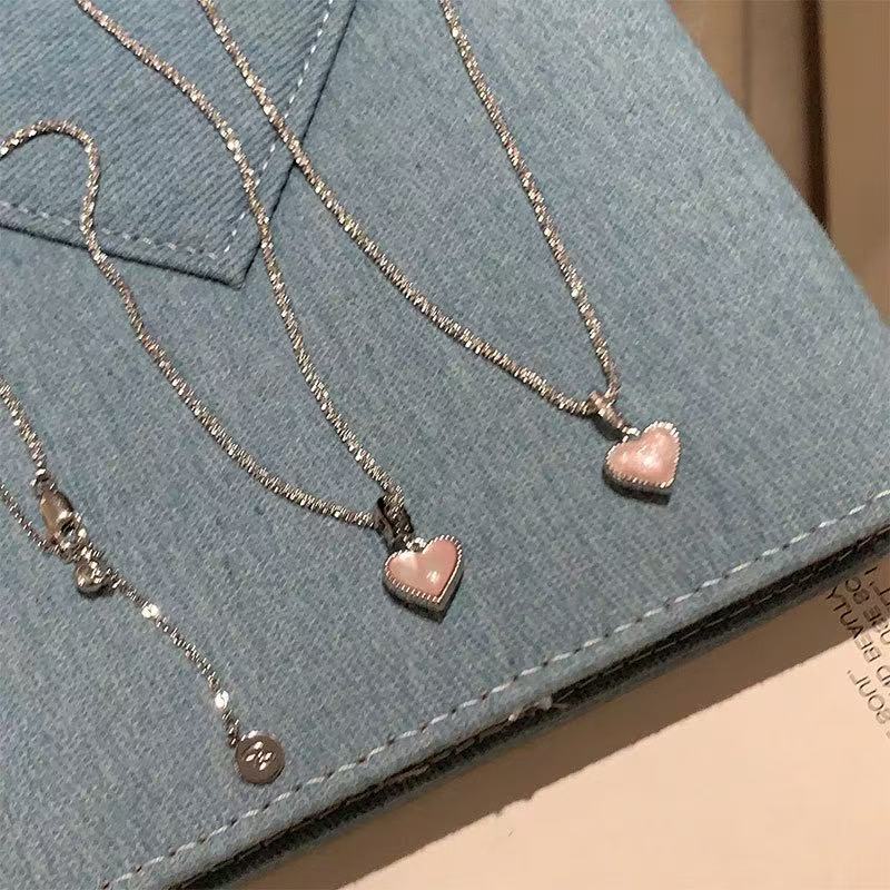 夢のようなきらめきのガーリーピンク貝母両面ハートネックレス、個性的で高級感があり、優しい雰囲気でどんなスタイルにも合う鎖骨チェーン(女性用)