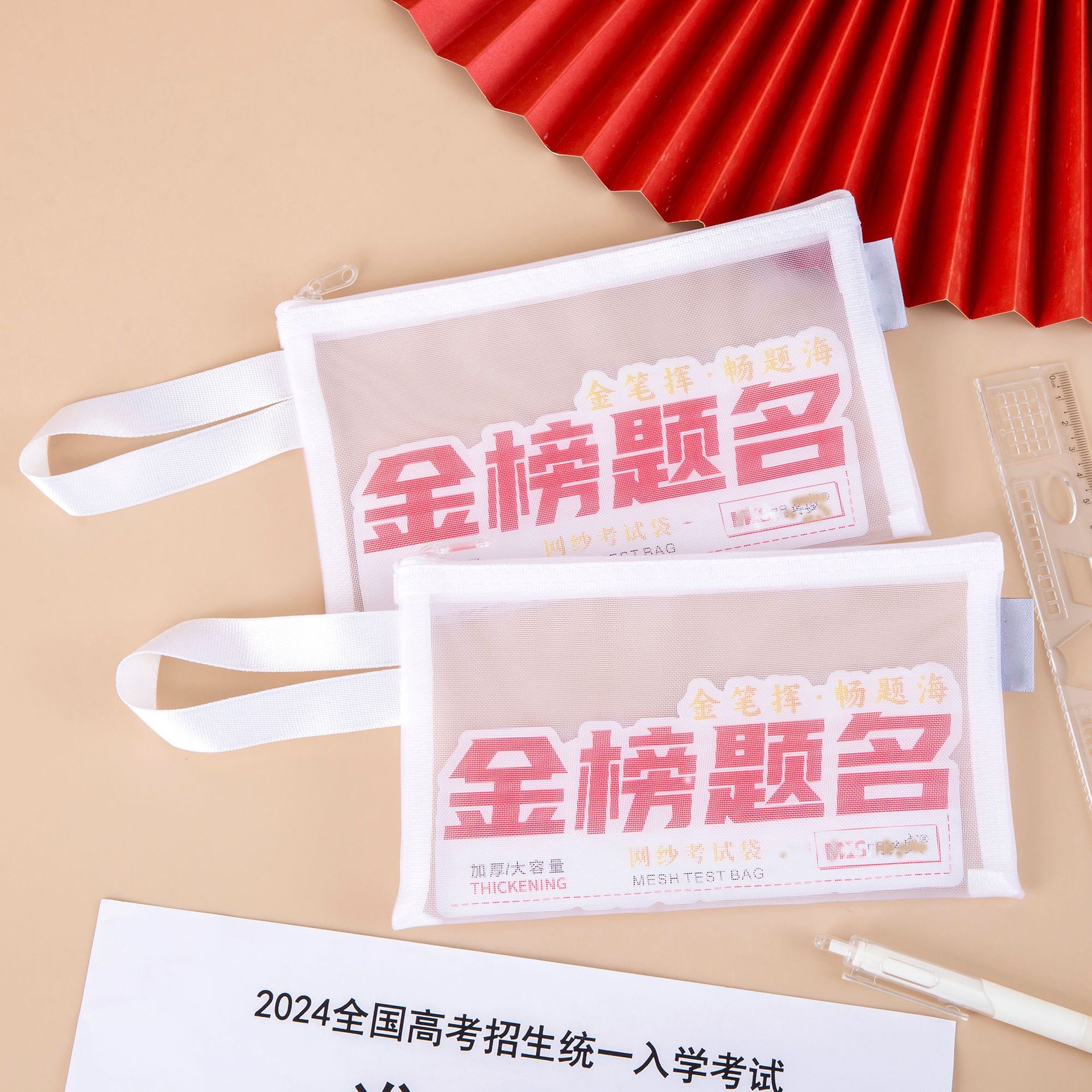 金榜题名考试专用a4网纱透明文件资料准考证笔具双拉链大容量收纳