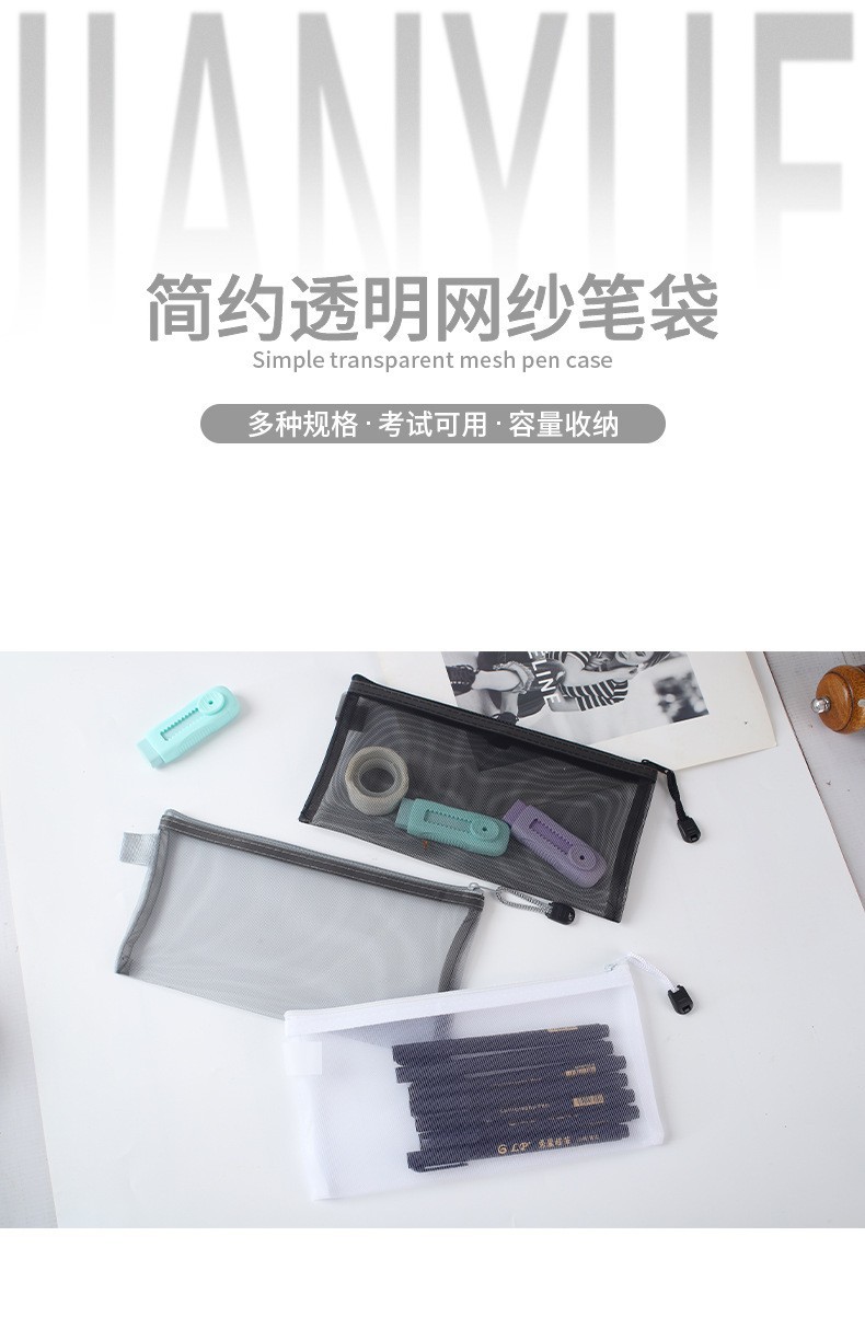 透明網紗筆袋大容量ファスナー収納袋学生試験専用携帯鉛筆袋文房具袋卸売り