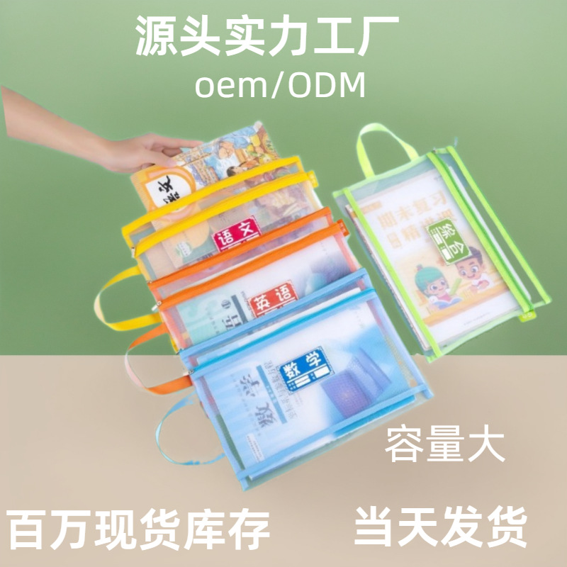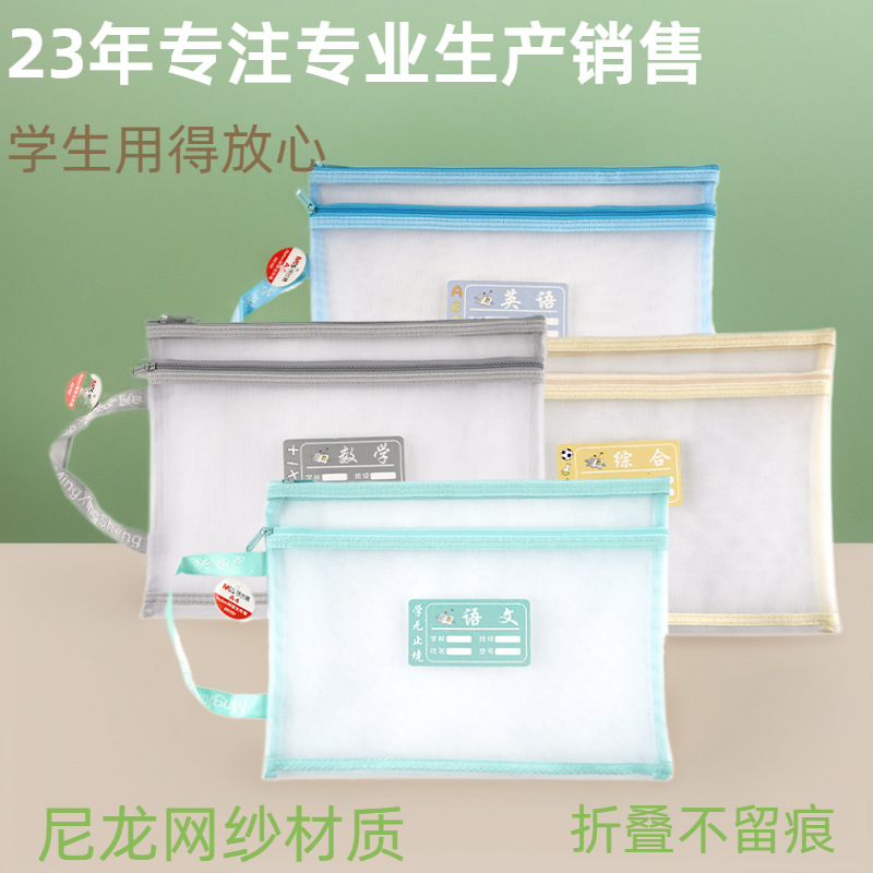 現物収納袋二重ナイロン科目袋学生分類網糸ファスナー書類袋卸売り透明
