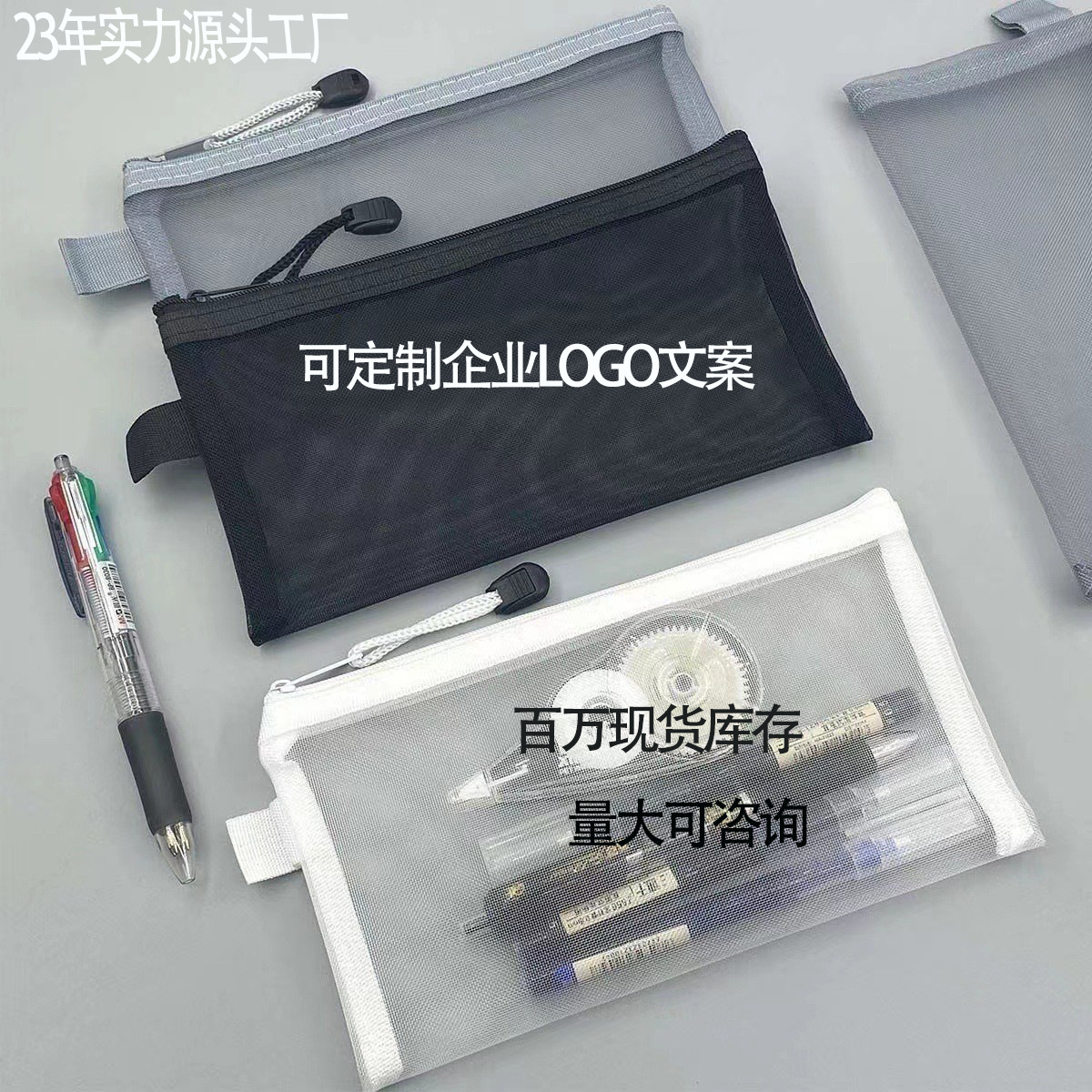現物卸売りナイロン網紗文房具袋シンプル透明筆袋試験学生大容量女子筆袋