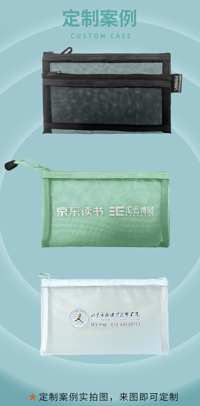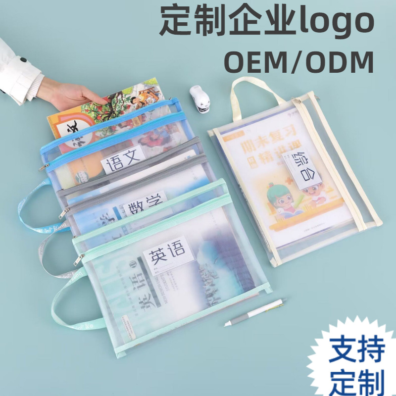 A4透明尼龙网纱拉链袋办公资料档案袋学生试卷课本分类文件袋印字