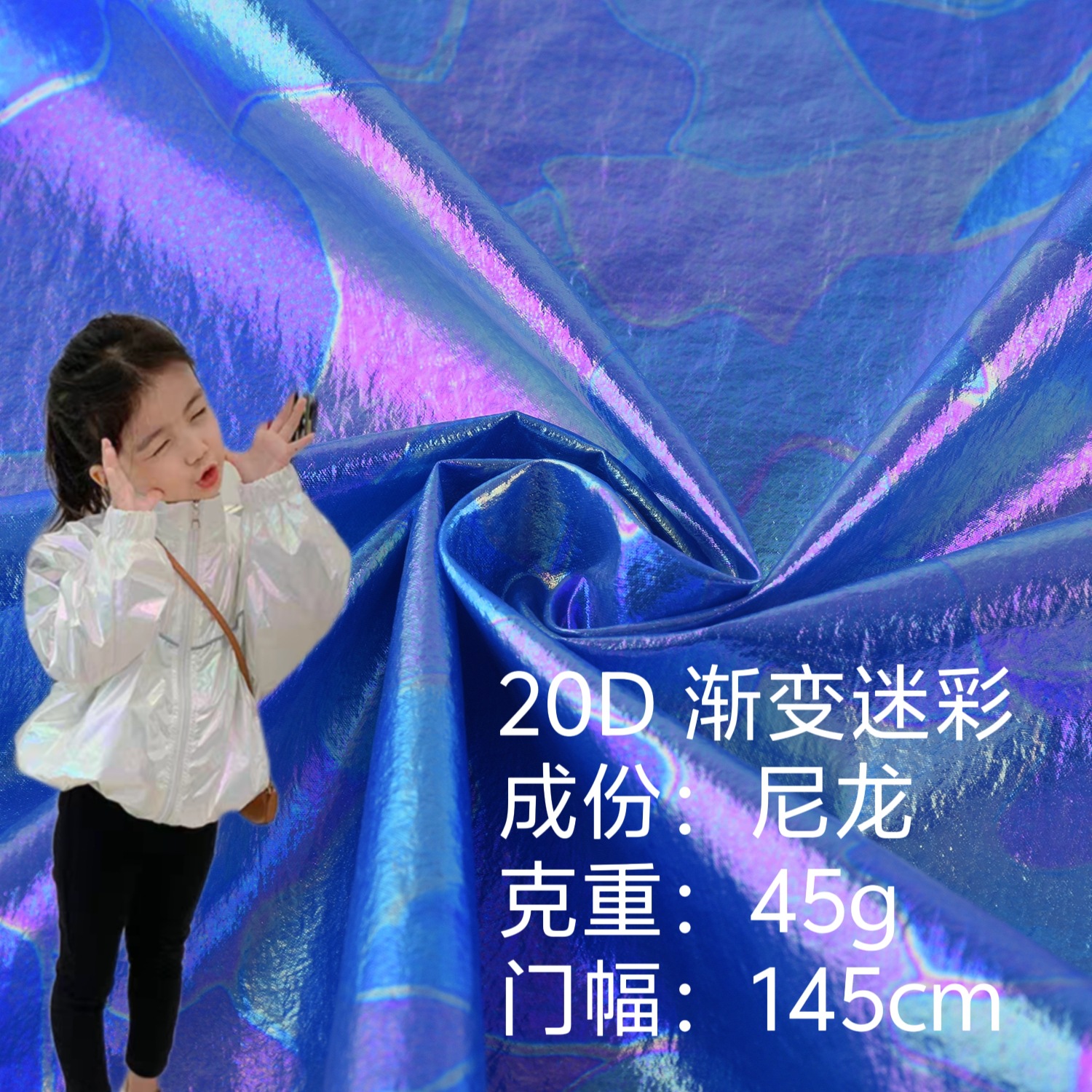 20Dナイロン幻彩レーザー迷彩グラデーション箔押し技術生地演出服風衣ダウンジャケット綿服生地