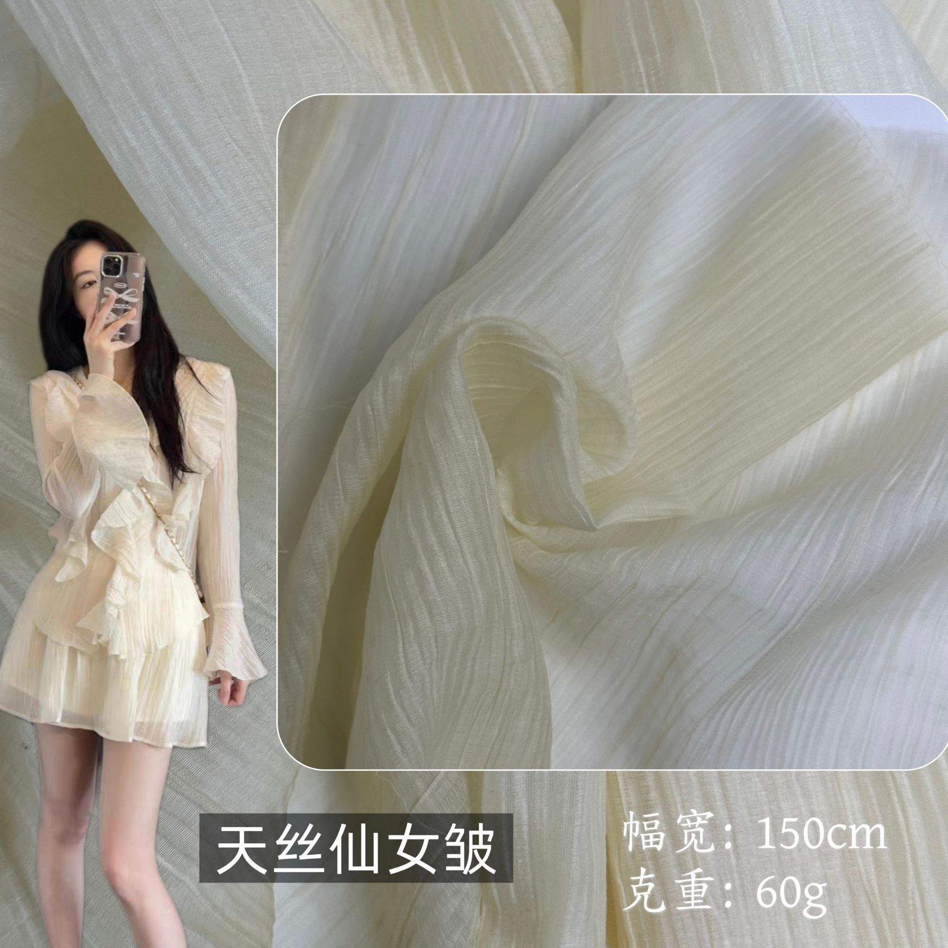テンセル妖精しわシフォン生地春夏ファッション日焼け止めシャツドレススーツ子供服しわ生地