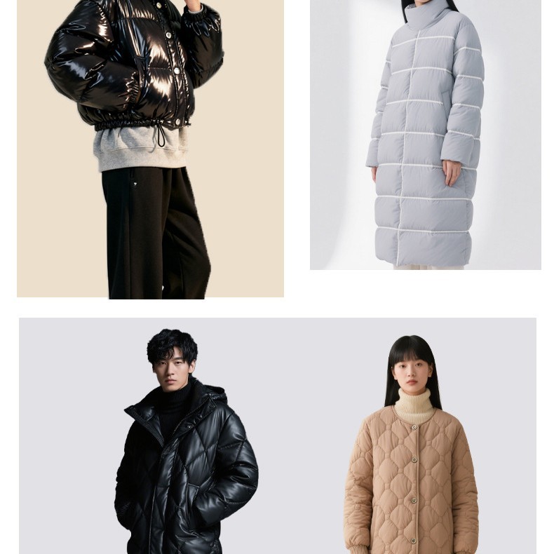 冬用綿服・ダウンジャケット生地、直充填生地、ダウン充填半製品、二重構造、中綿不要生地、ダウンジャケット専用
