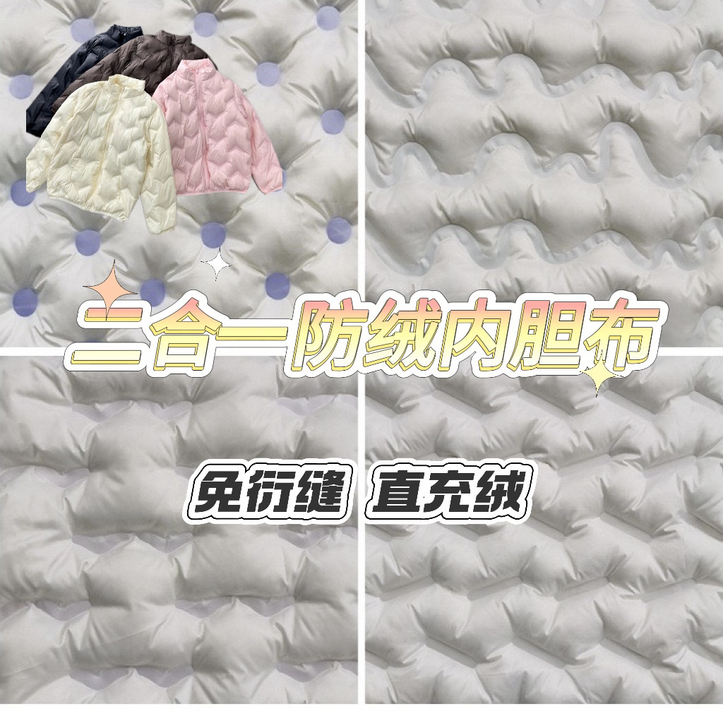 ダウンジャケット生地直接充填チャンネル布 3D プレスポリエステル充填ベルベット半完成生地胆汁フリー布縫製なし卸売