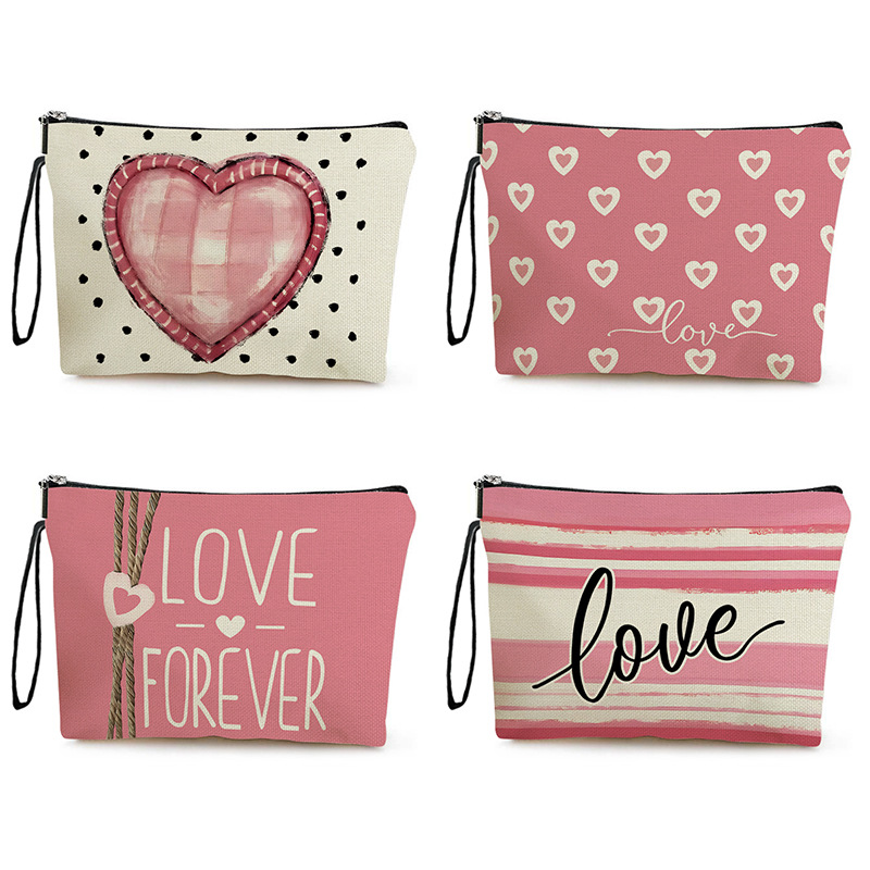 国境を越えたバレンタインデーピンクの愛化粧バッグ女性口紅化粧袋家庭ファスナー洗面袋学生筆袋