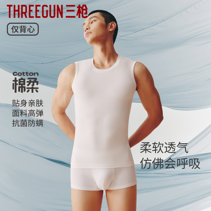 【精練綿】男性ベスト夏の新型純色袖なしインナースポーツ男性用シングル着通気性