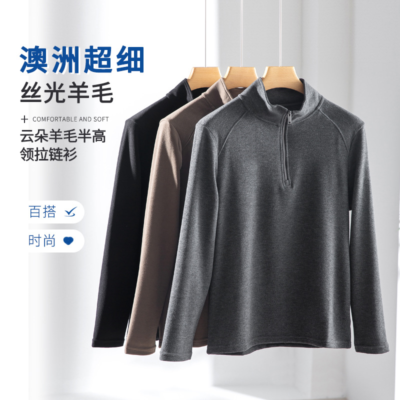 男性立襟ファスナーシャツ半高襟シンプルなプルオーバー保温スポーツカジュアル上着長袖シャツ