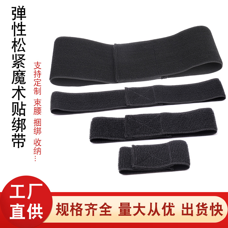 现货弹力反扣魔术贴绑带束腰绑腿带柔软加厚松紧毛扎带伸缩粘扣带