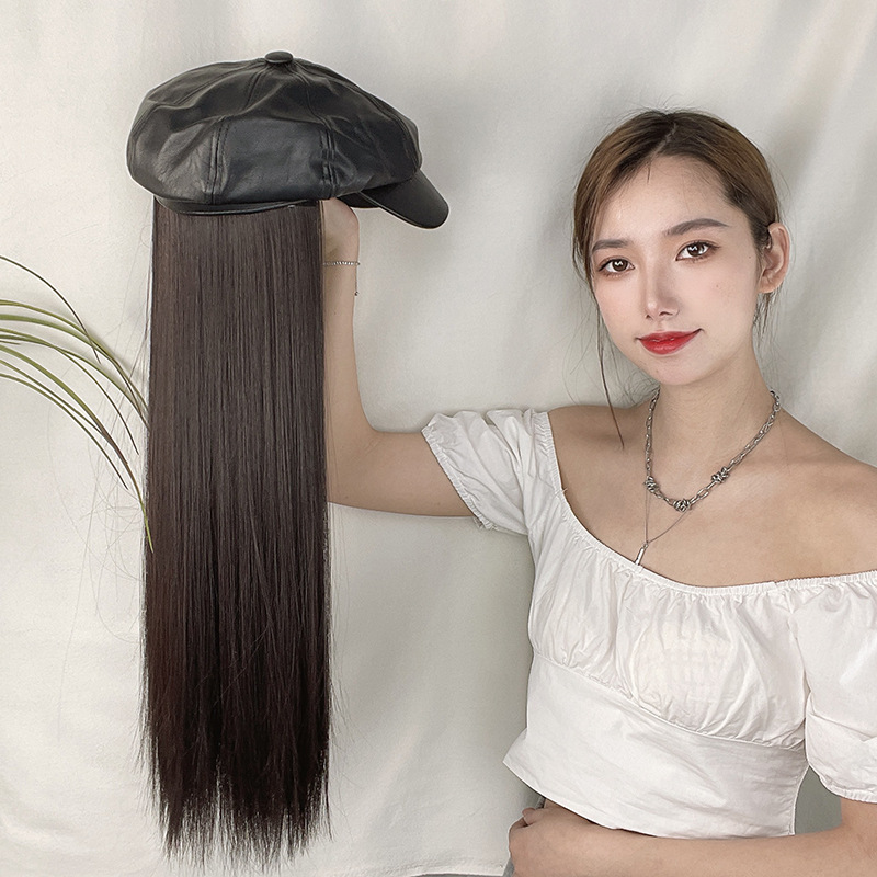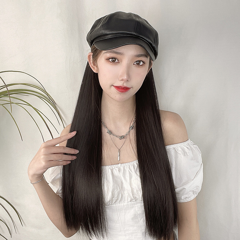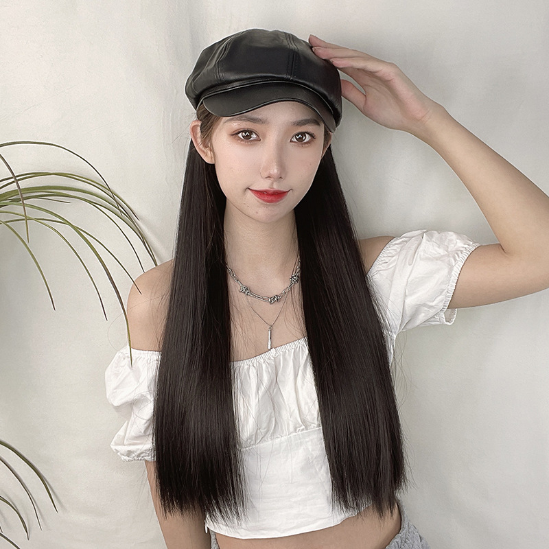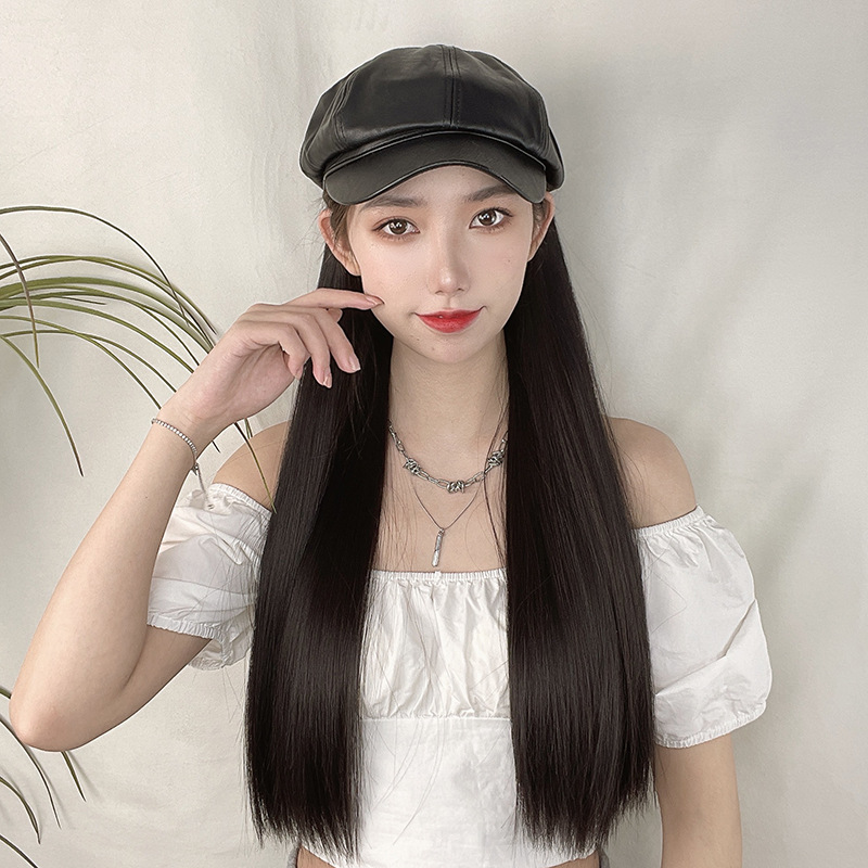 【品名】帽子假发长直发
