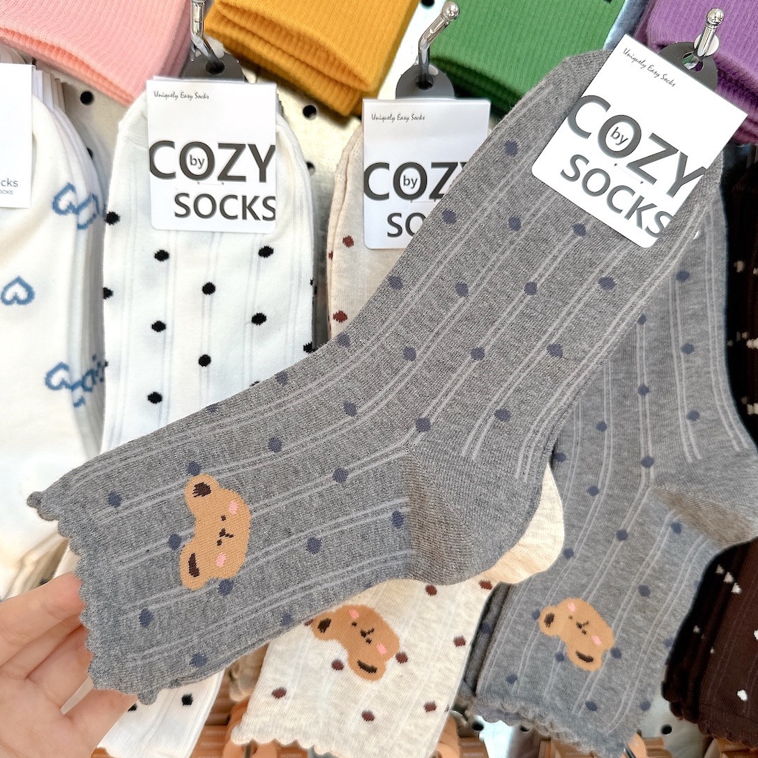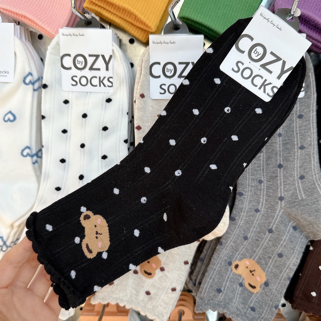COZY韓国点綿靴下女性2498秋冬新商品植毛熊靴下東大門かわいい中筒靴下