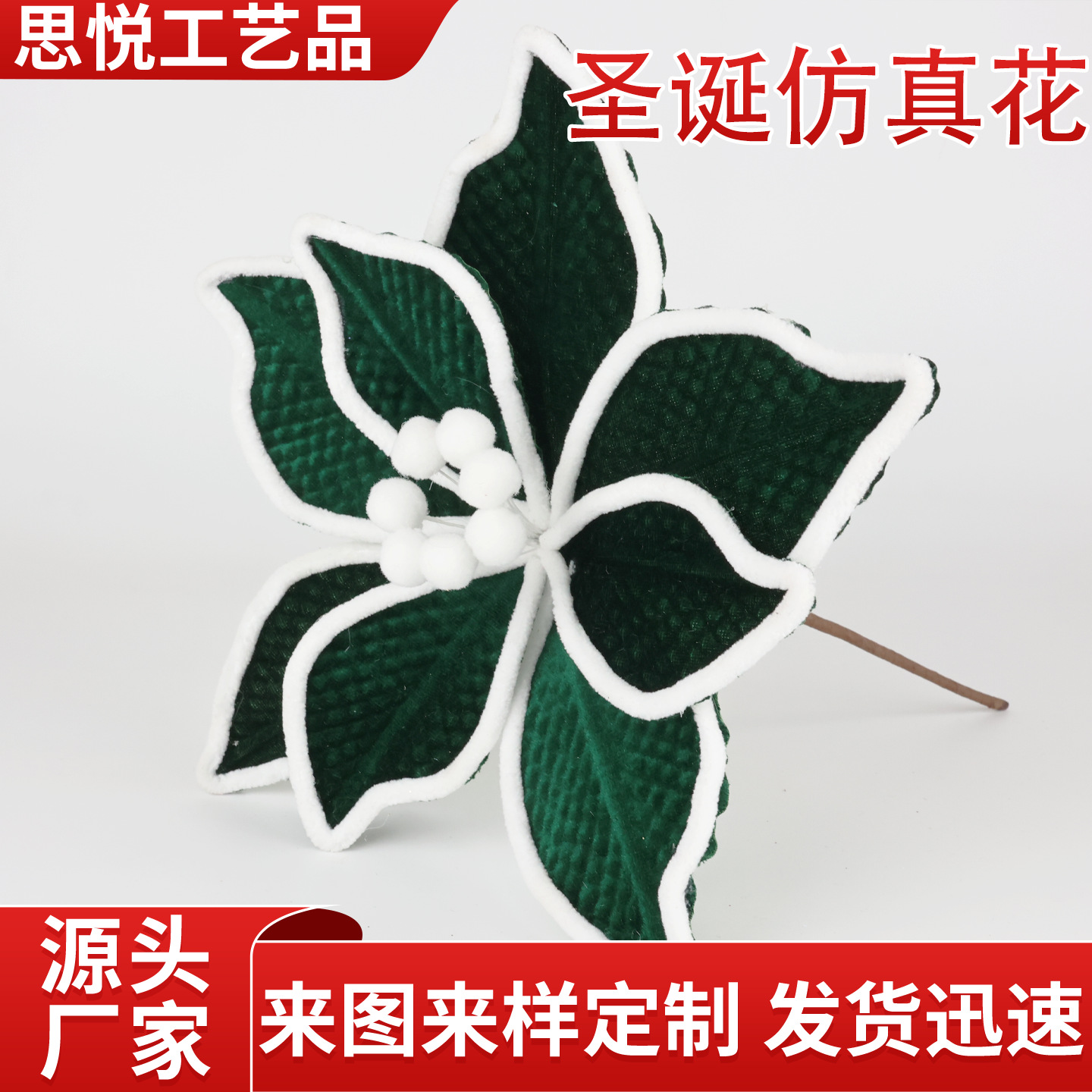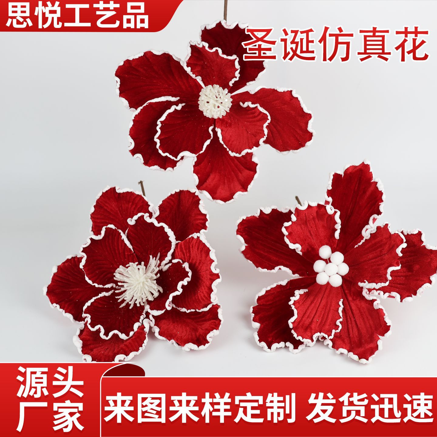 跨境新款圣诞花节日高档仿真花配件圣诞树装饰花新年布艺仿真花