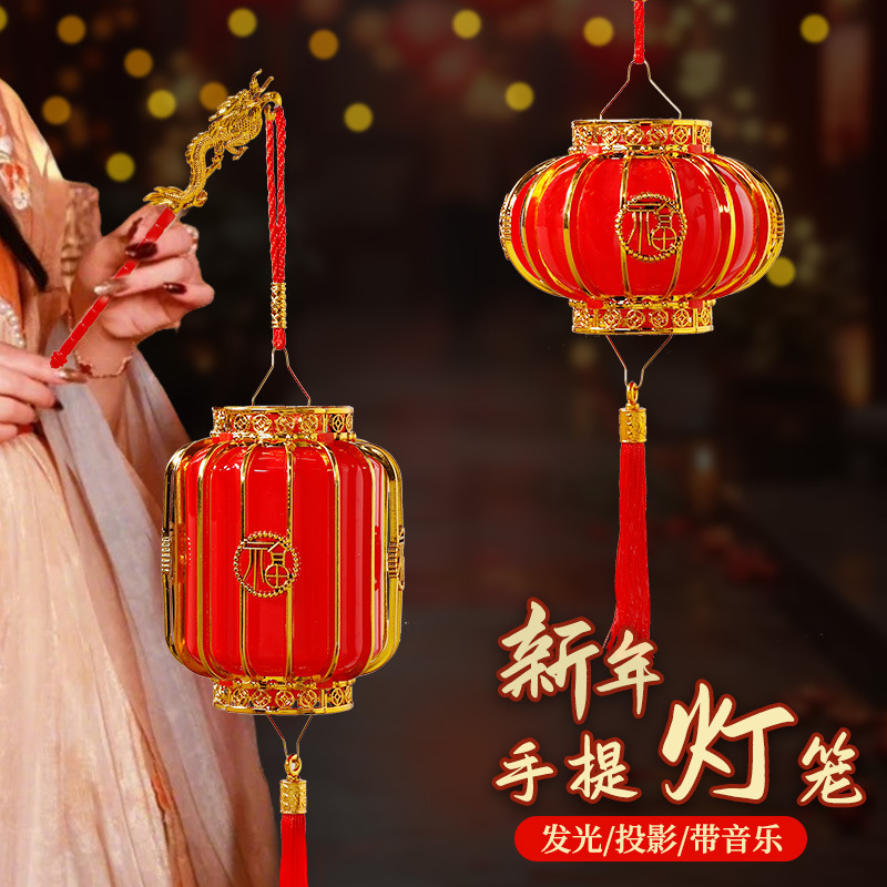 馬年新年子供用持ち運び可能な発光吊り下げ花提灯2026春節元宵節レトロLEDクリスタル宮殿提灯