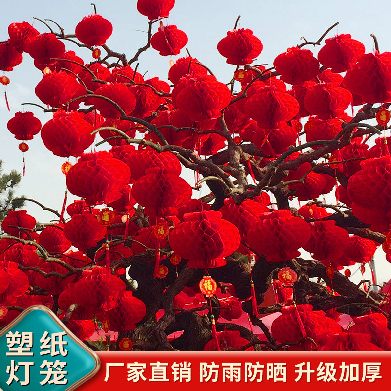 2025旧正月のプラスチック紙のハニカムランタンの新年のシーンの配置のペンダントの大きい赤い連続の祝い事の福の字はデパートを飾ります。