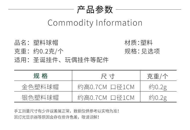 ゴールドプラスチックボールキャップ 100個/パック,シルバープラスチックボールキャップ 100個/パック