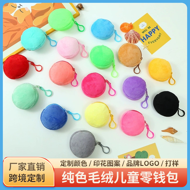 纯色毛绒儿童零钱包光板迷你便捷耳机包简约毛绒背包挂件钥匙扣