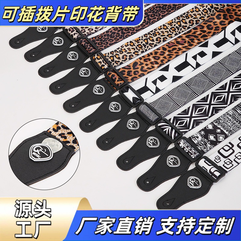 工厂直发民谣木吉他背带加宽可插拨片涤纶印花斜跨电木吉他肩带