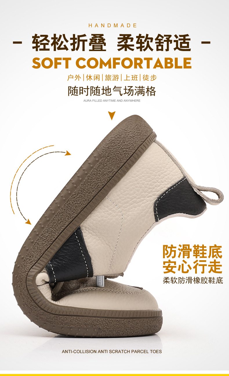頭層牛革男靴2025新型カジュアルシューズ男性軽量ソフト底真皮通気百合白靴板靴