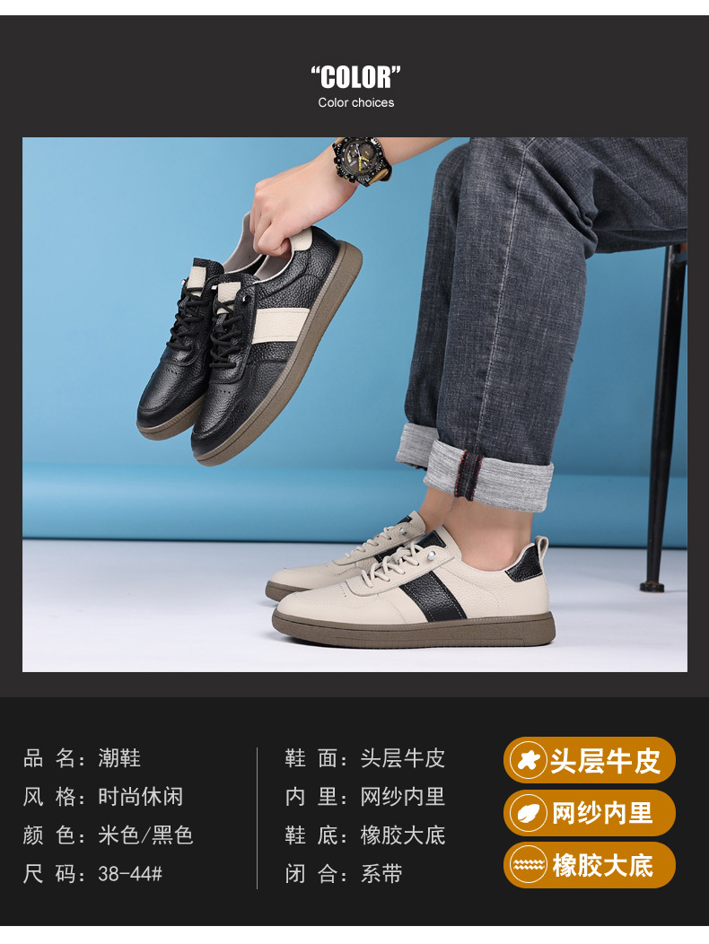 頭層牛皮2025新型男性カジュアル靴真皮通気性男性用白靴靴靴男靴靴靴