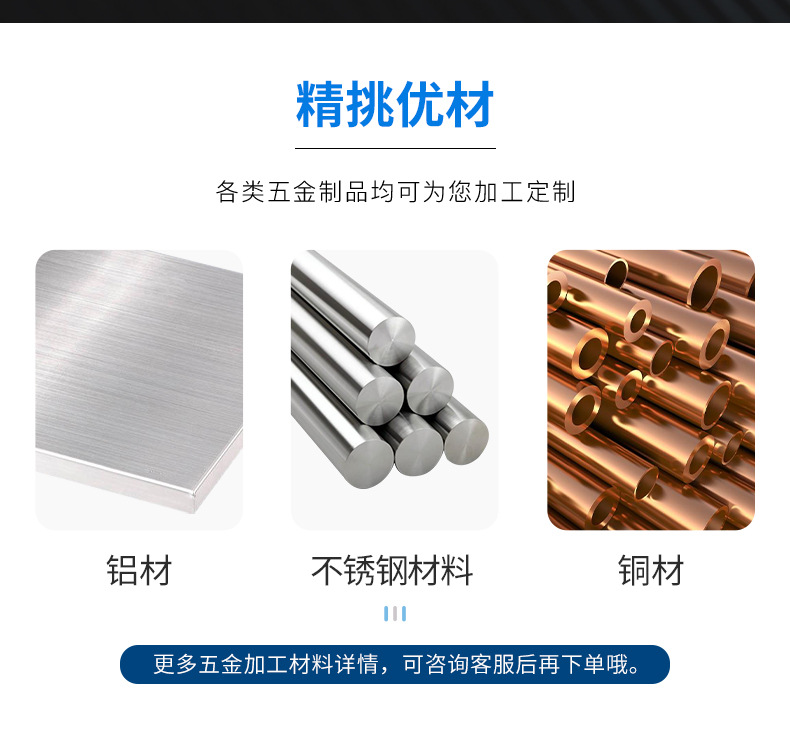 加工材料 プラスチック,ステンレス鋼,アルミニウム合金,銅,鉄,アルミニウム,真鍮,POM,鉄の板,炭素鋼,ブロンズ,ステンレス鋼板,赤銅,アルミニウム,PEEK,アルミニウムプロファイル,ステンレス鋼など,アルミニウム合金など,PP,PA(ナイロン),カスタマイズ可能、カスタマーサービスにご相談ください
