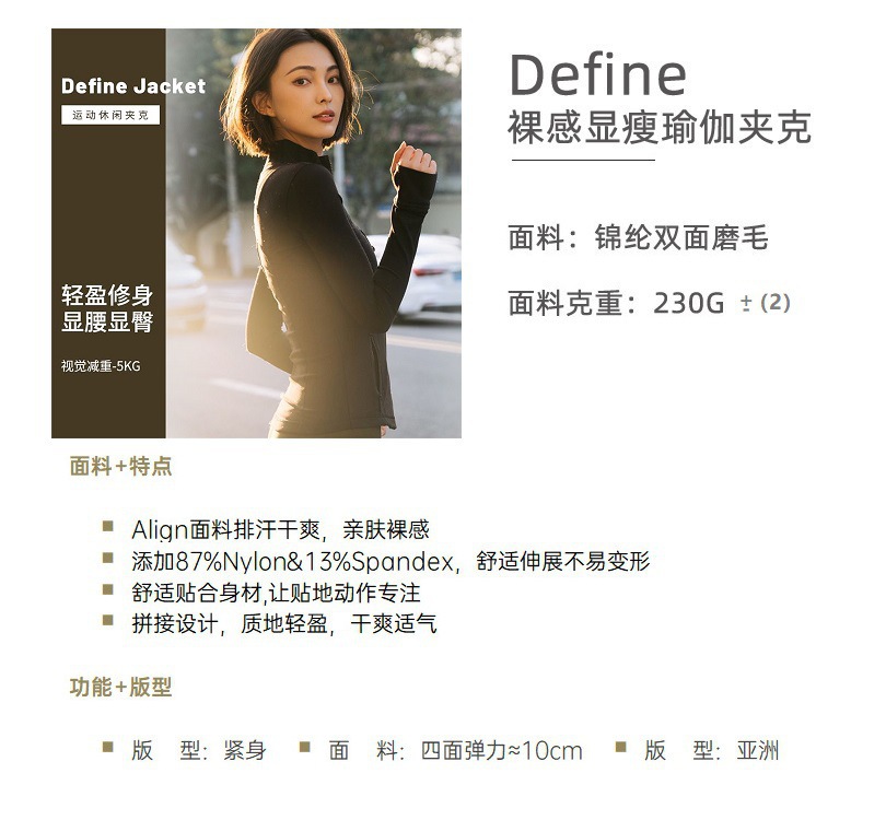 lulu原版Define原标金拉链瑜伽服立领夹克健身服长袖跑步运动外套