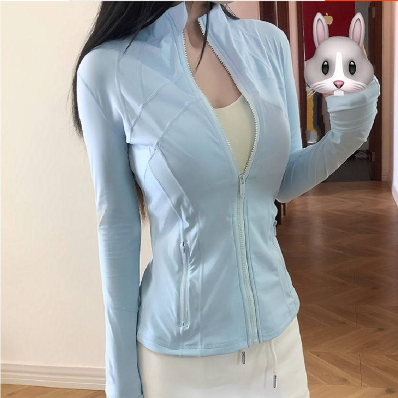 Luluヨガ服女性裸感 .comコートスタンドカラースリム長袖ランニングフィットネスジッパースポーツジャケット
