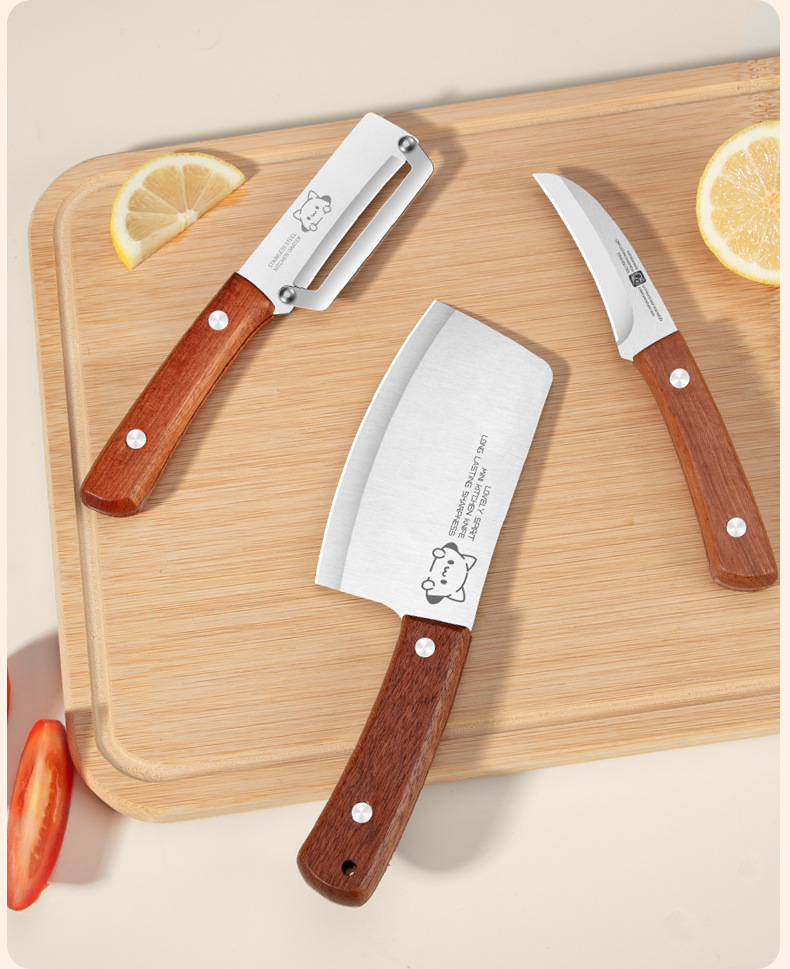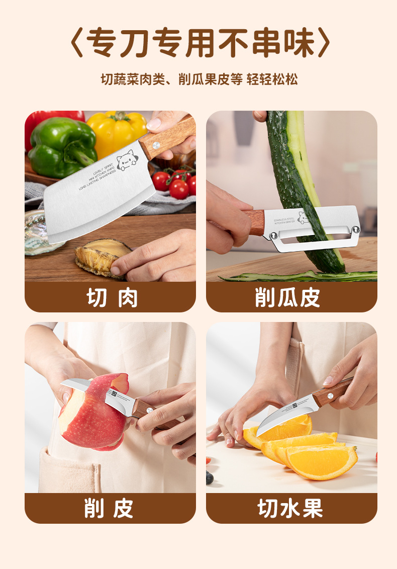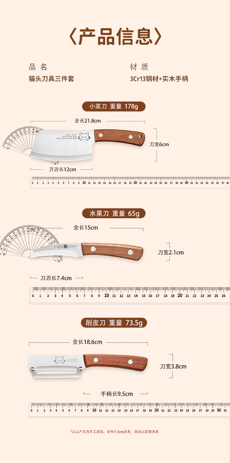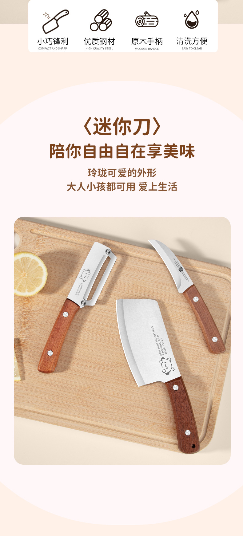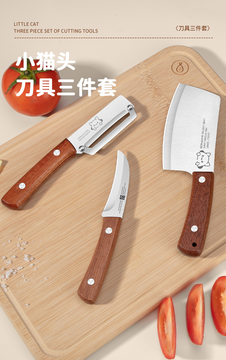 仕様 木柄エルボアップルナイフ,猫頭木柄メロンカンナ,ミニ包丁