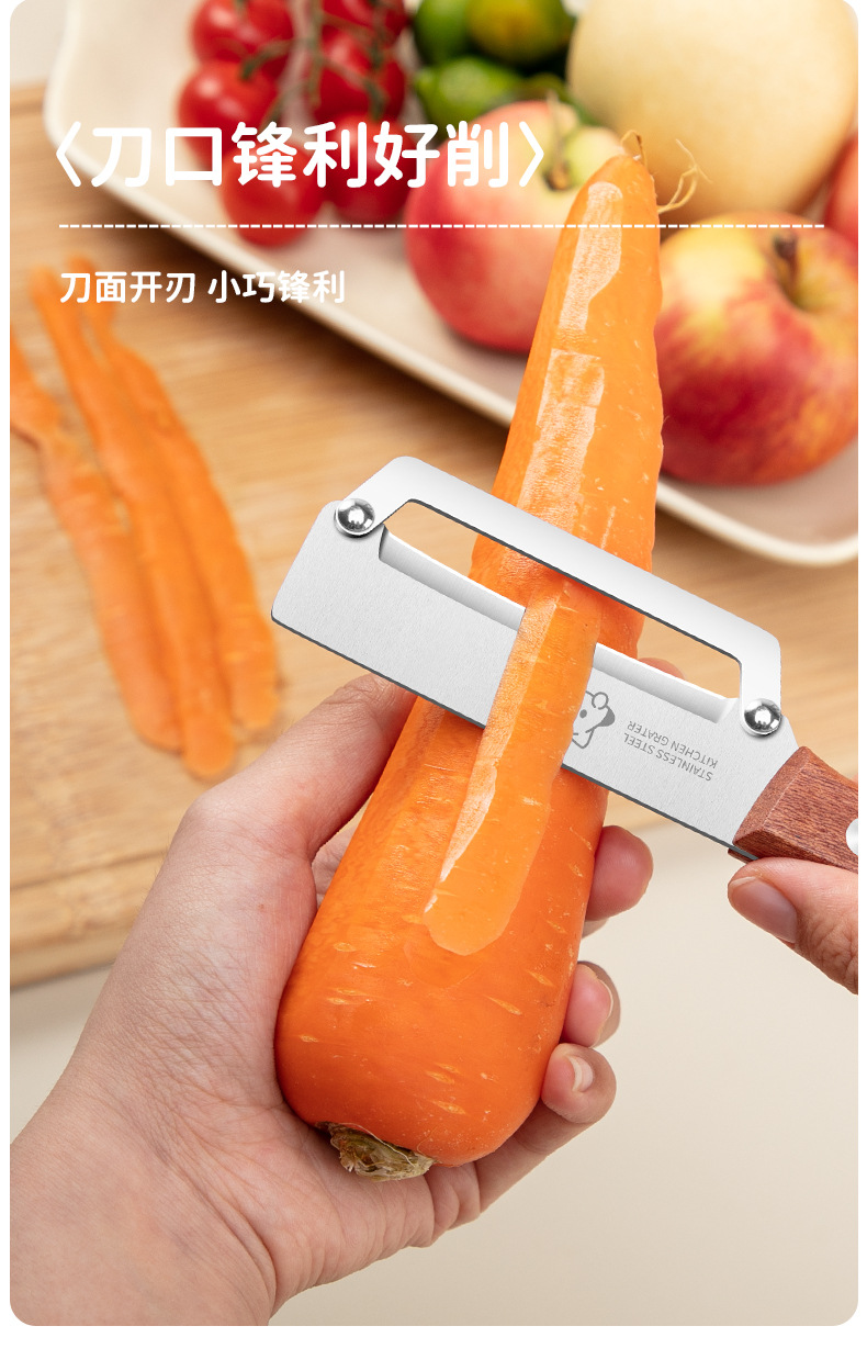 高颜值木柄削皮刀厨房专用瓜果刨丝刨甘蔗家用