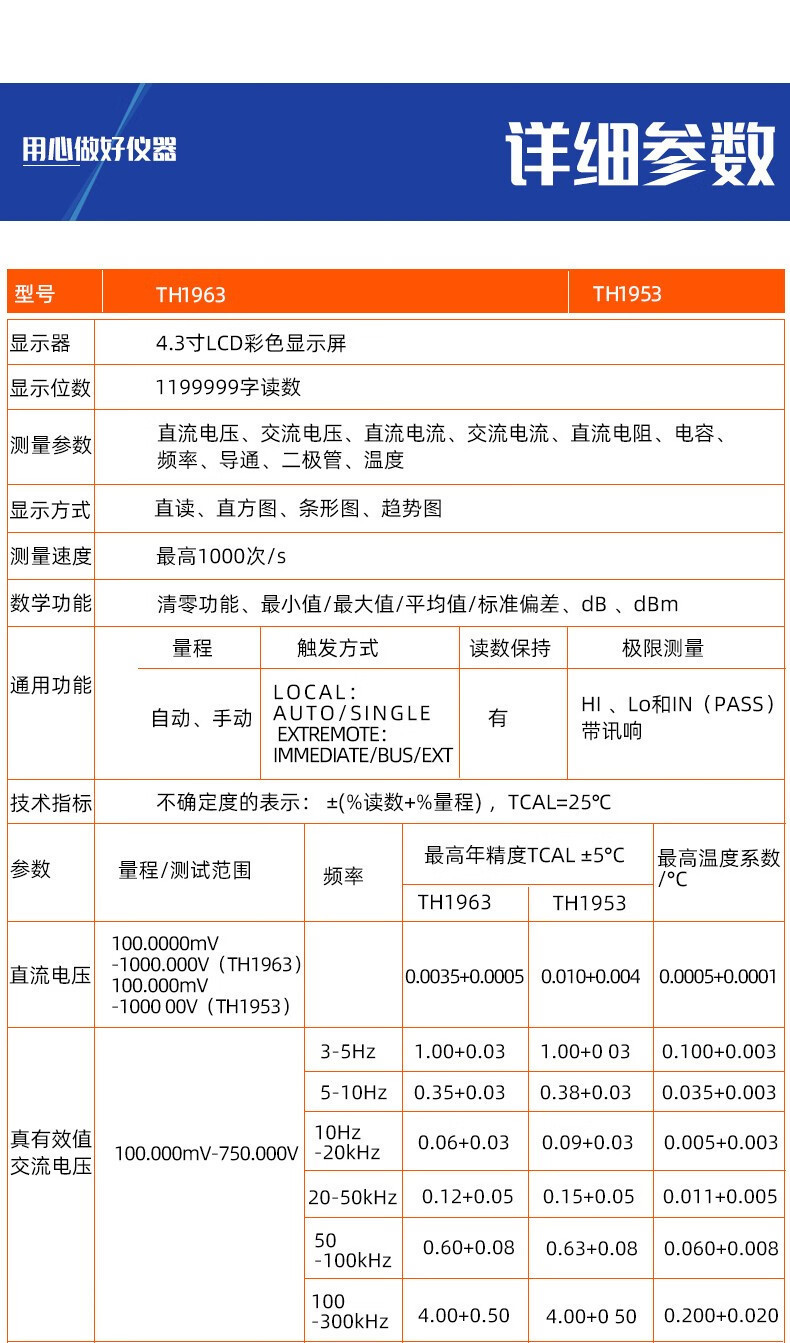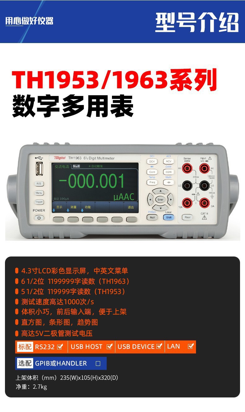 同惠六位半数字多用表高精度万用表TH1963电压电阻电流电容测试仪