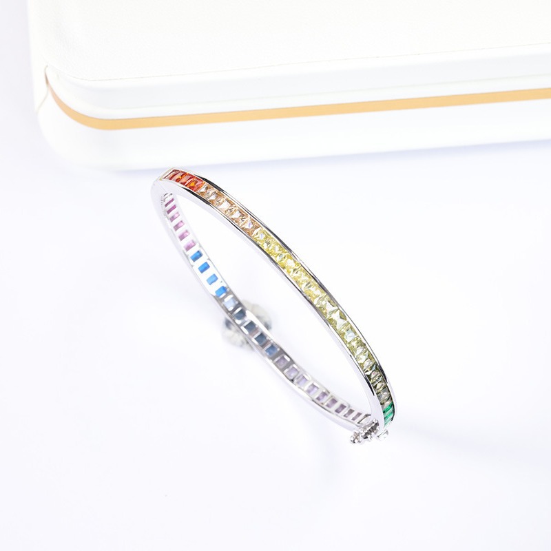 虹系銀メッキグラデーションカラーサファイアブレスレット模造宝石虹銀飾り女性気質ファッションブレスレット