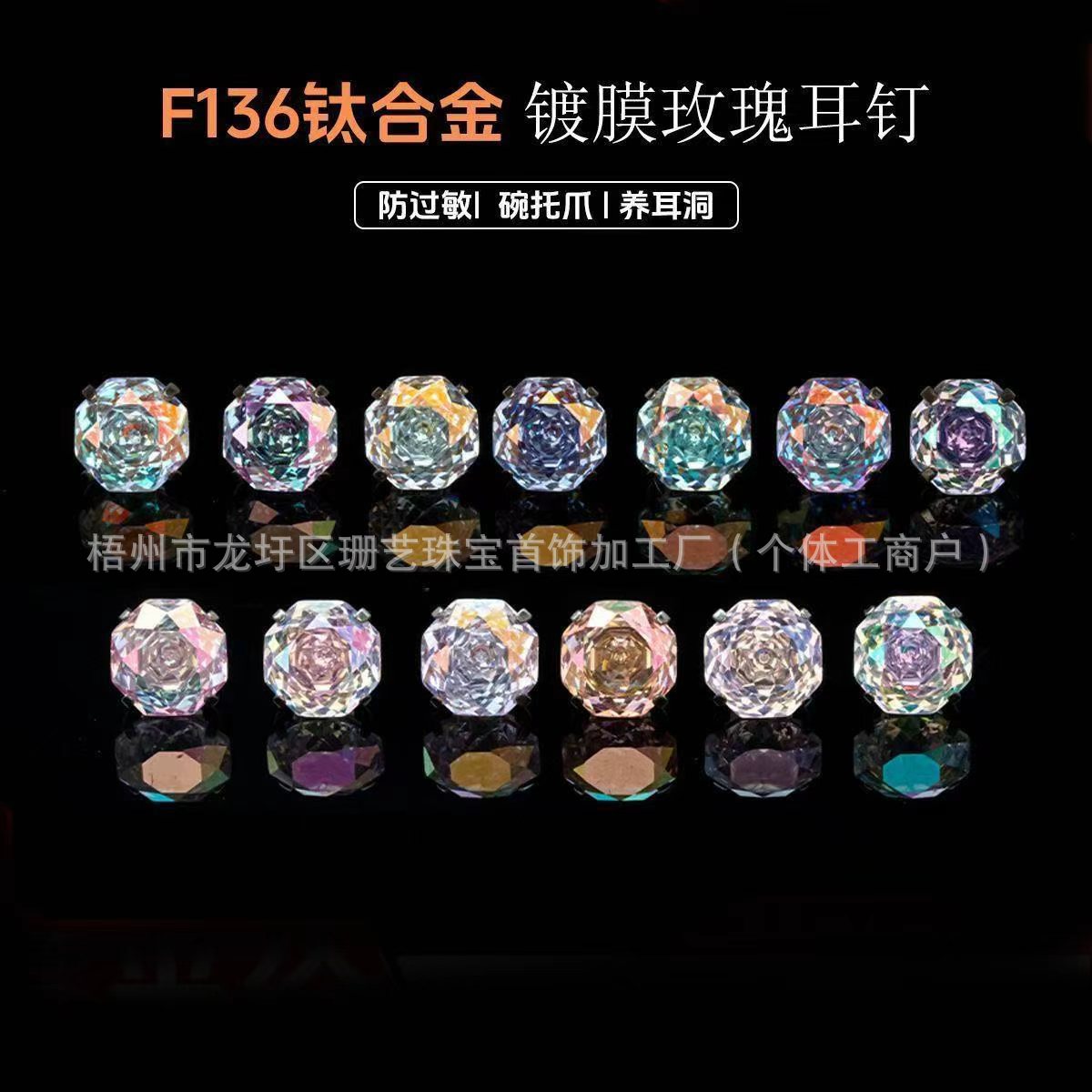 F136チタン通常爪メッキローズカットジルコン耳骨钉ピアスG23チタン合金ピアスアクセサリー耳ウォーム