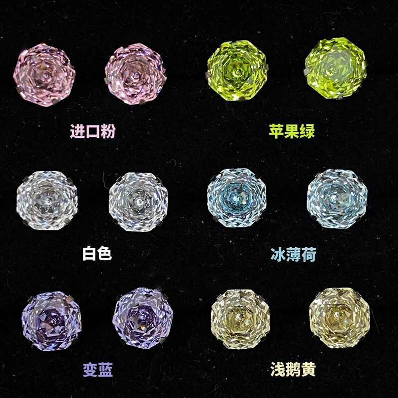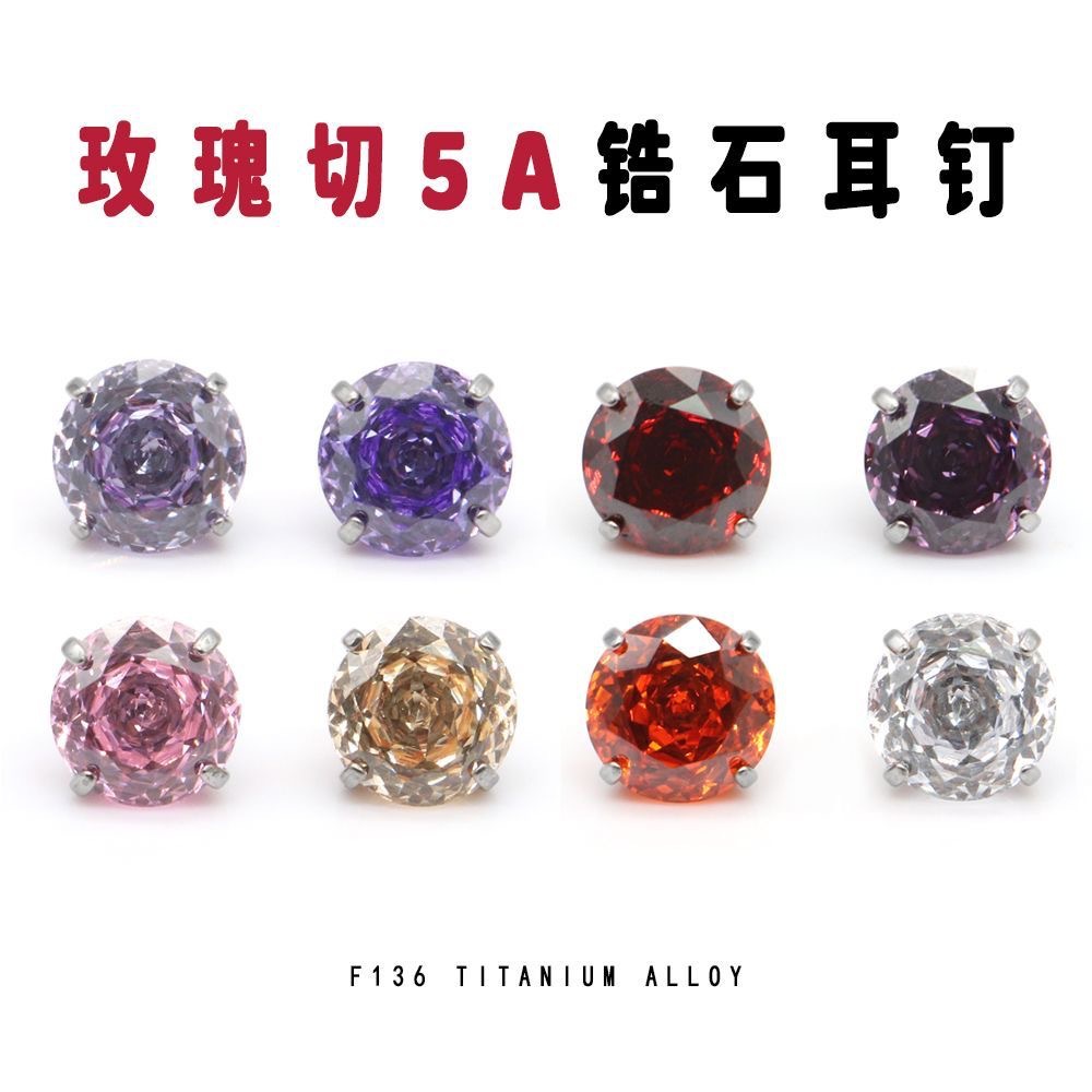 千年バラの耳切り釘8mm5Aジルコン多色重工耳骨釘ピアス6mmバラの耳釘