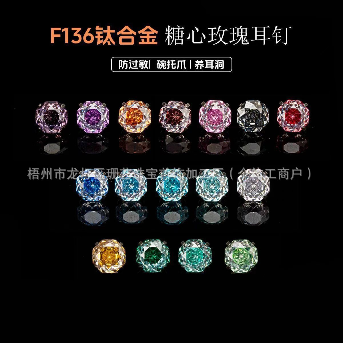 F136チタン合金6mmジルコングラデーション花火ピアスピアスピアスピアスメーカー直販