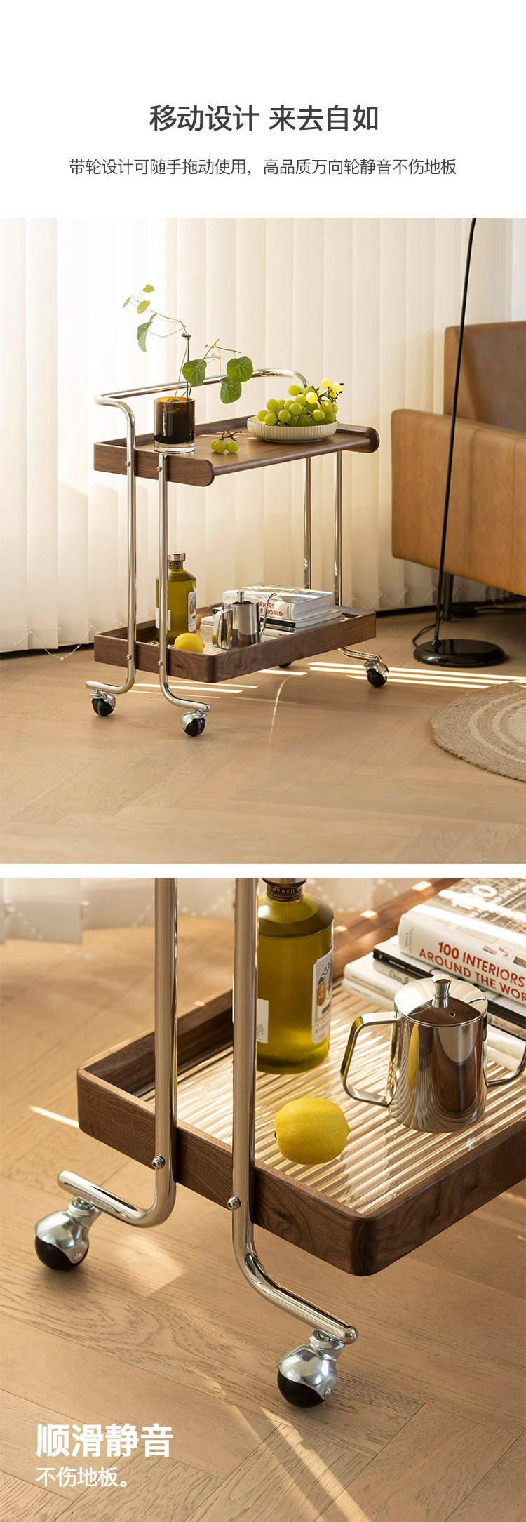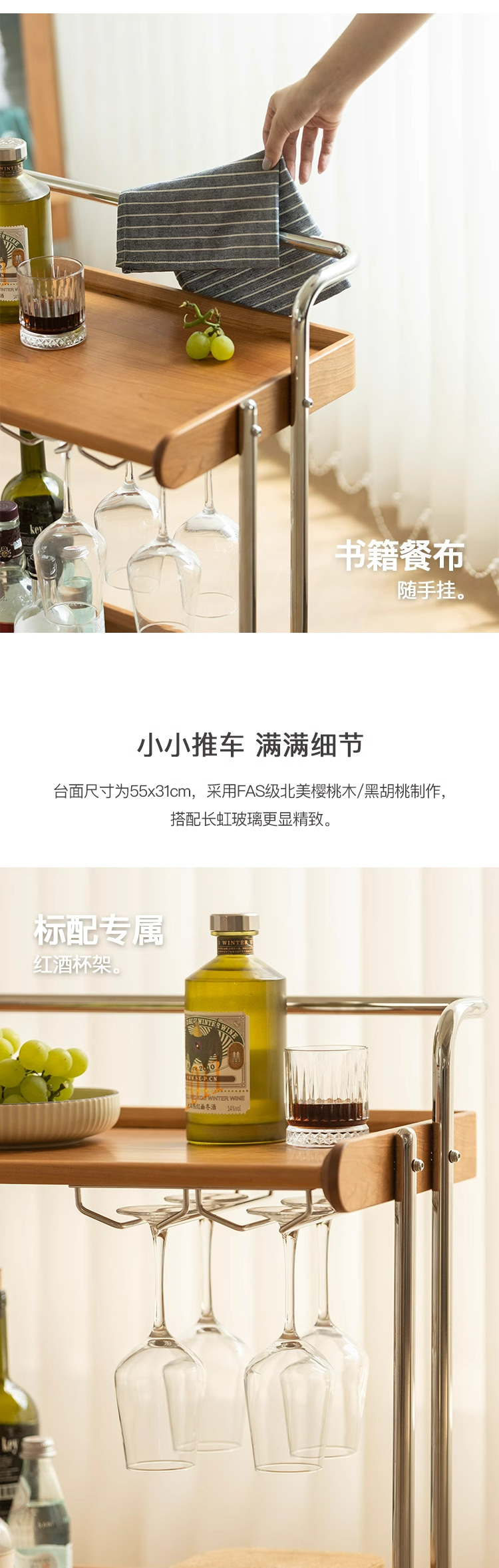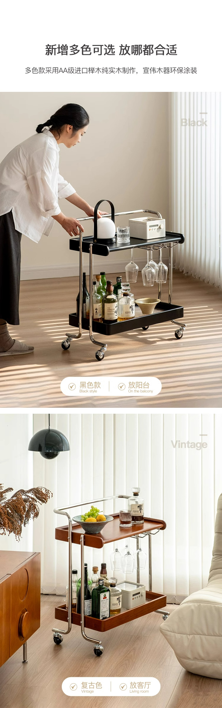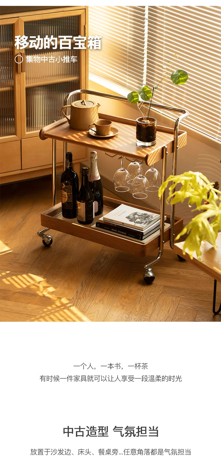 桜の木の実木のレストランの小さい車の物置棚は移動することができます。